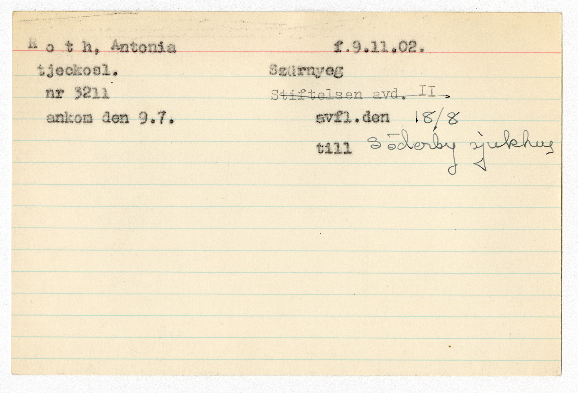 Ett skrivkort med patientuppgifter gällande Antonia Roth.