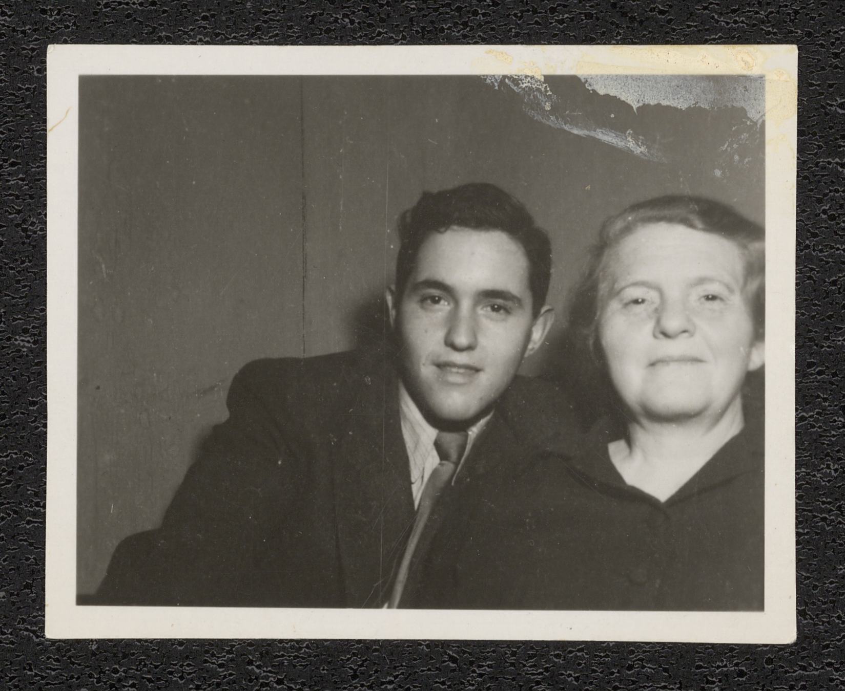 Litet svartvitt fotografi av Georg Witt tillsammans med sin mamma Alice Witt