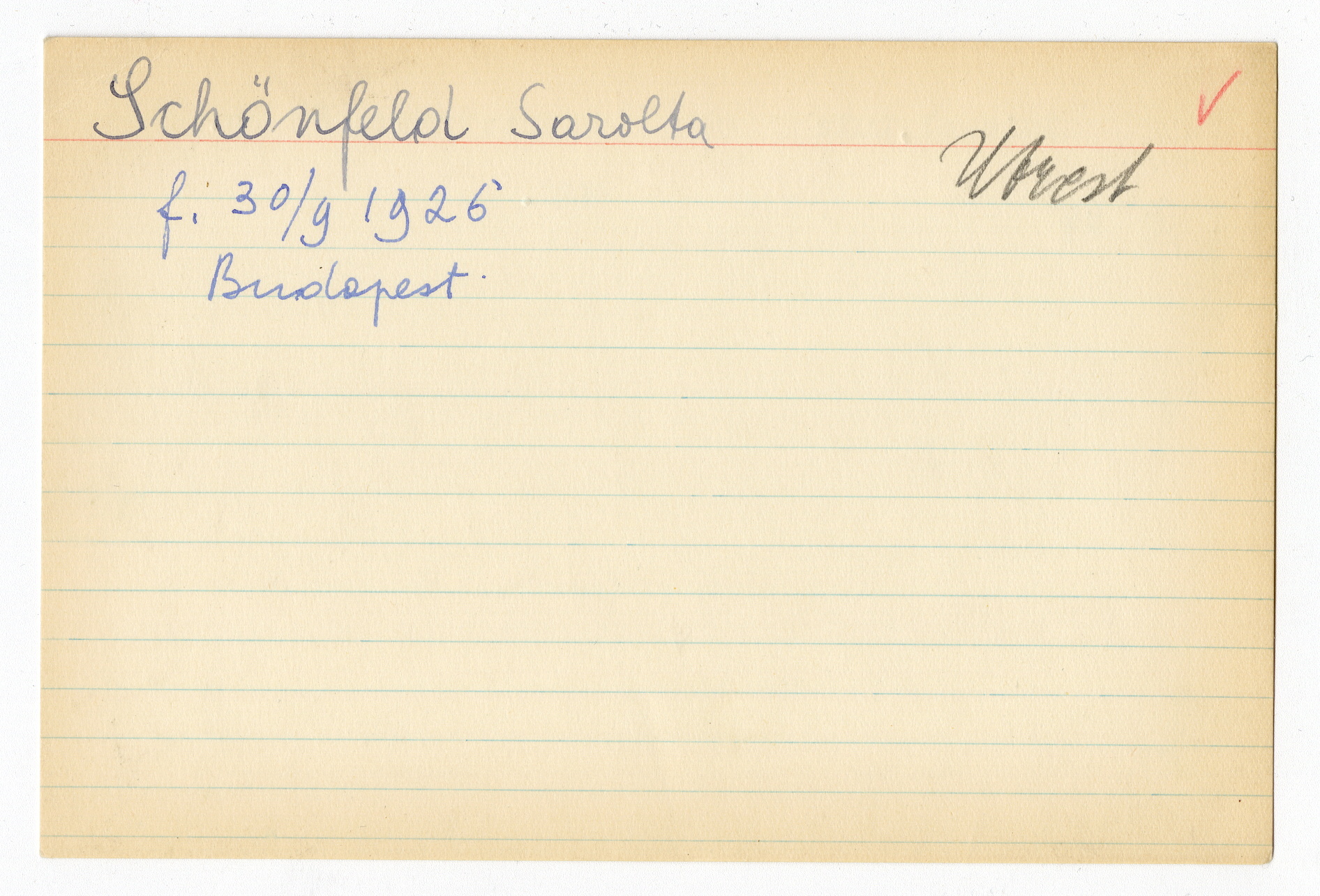 Registerkort Sarolta Schönfeld och Luis Spiegel