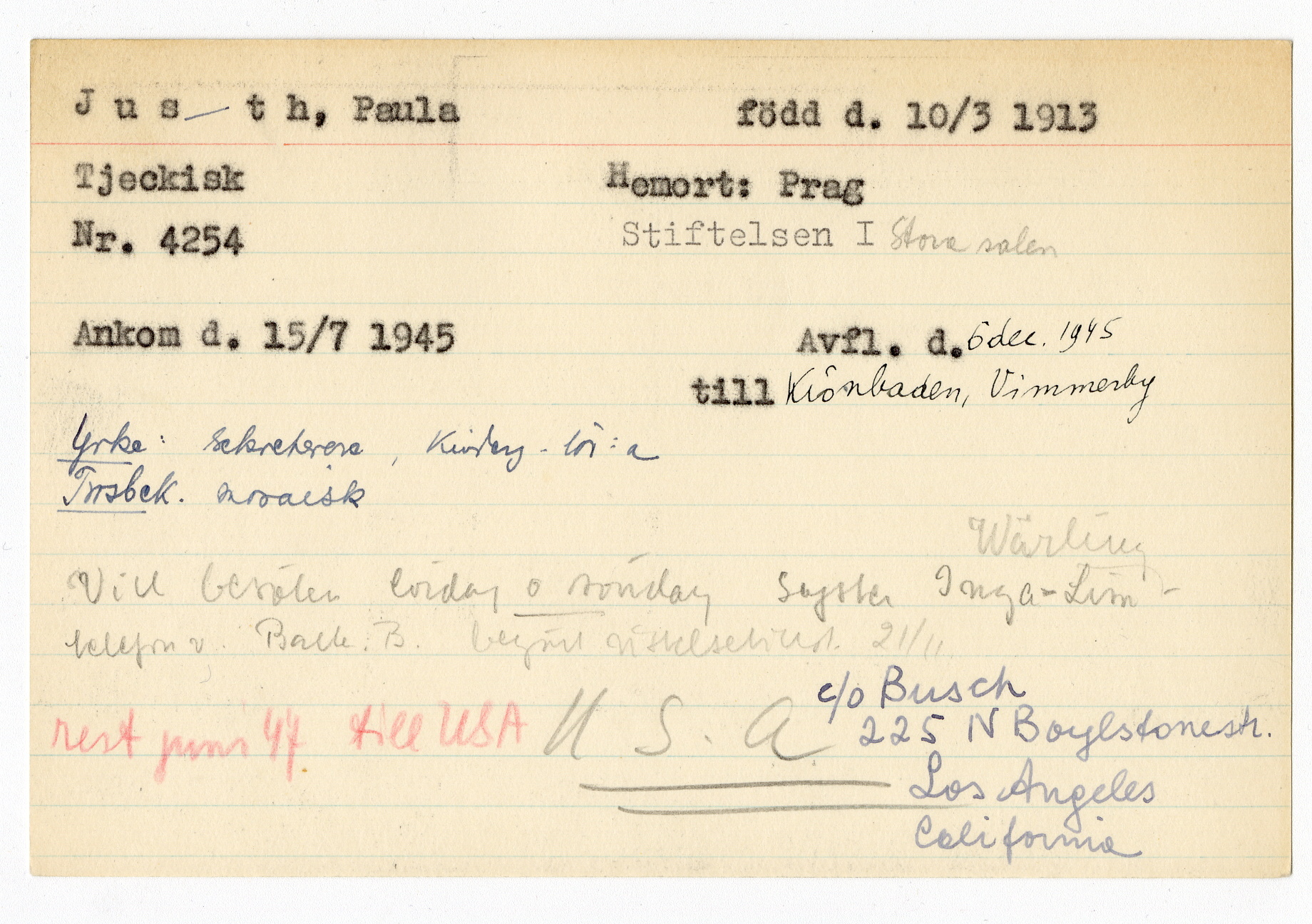 Registerkort Paula Justh
