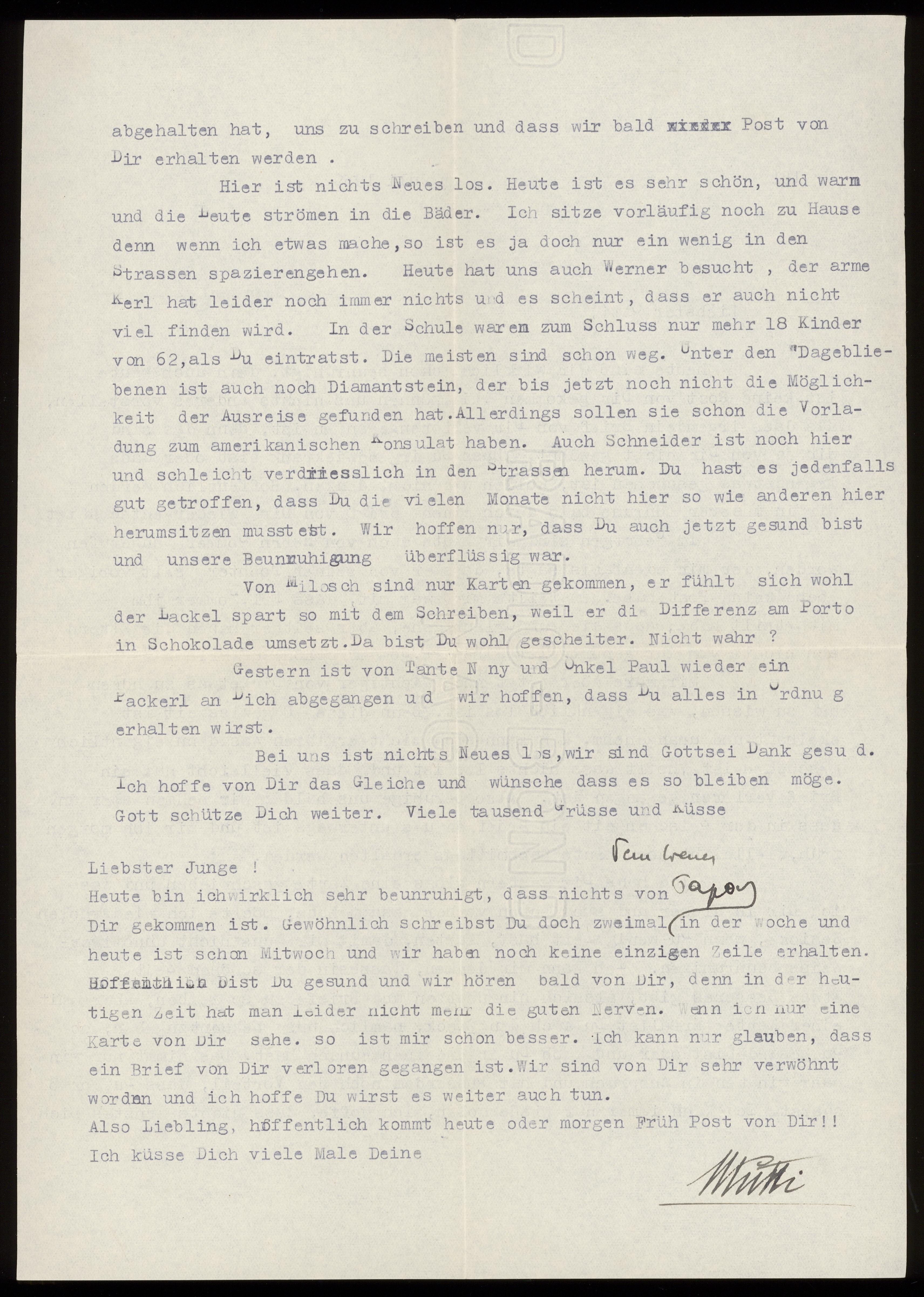 Maskinskrivet brev till Otto Ullman från föräldrarna Josef och Elise Ullmann daterat 5 juli 1939 Wien.