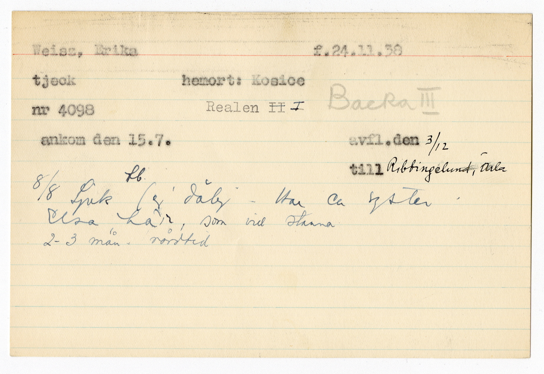 Registerkort Erika Weisz