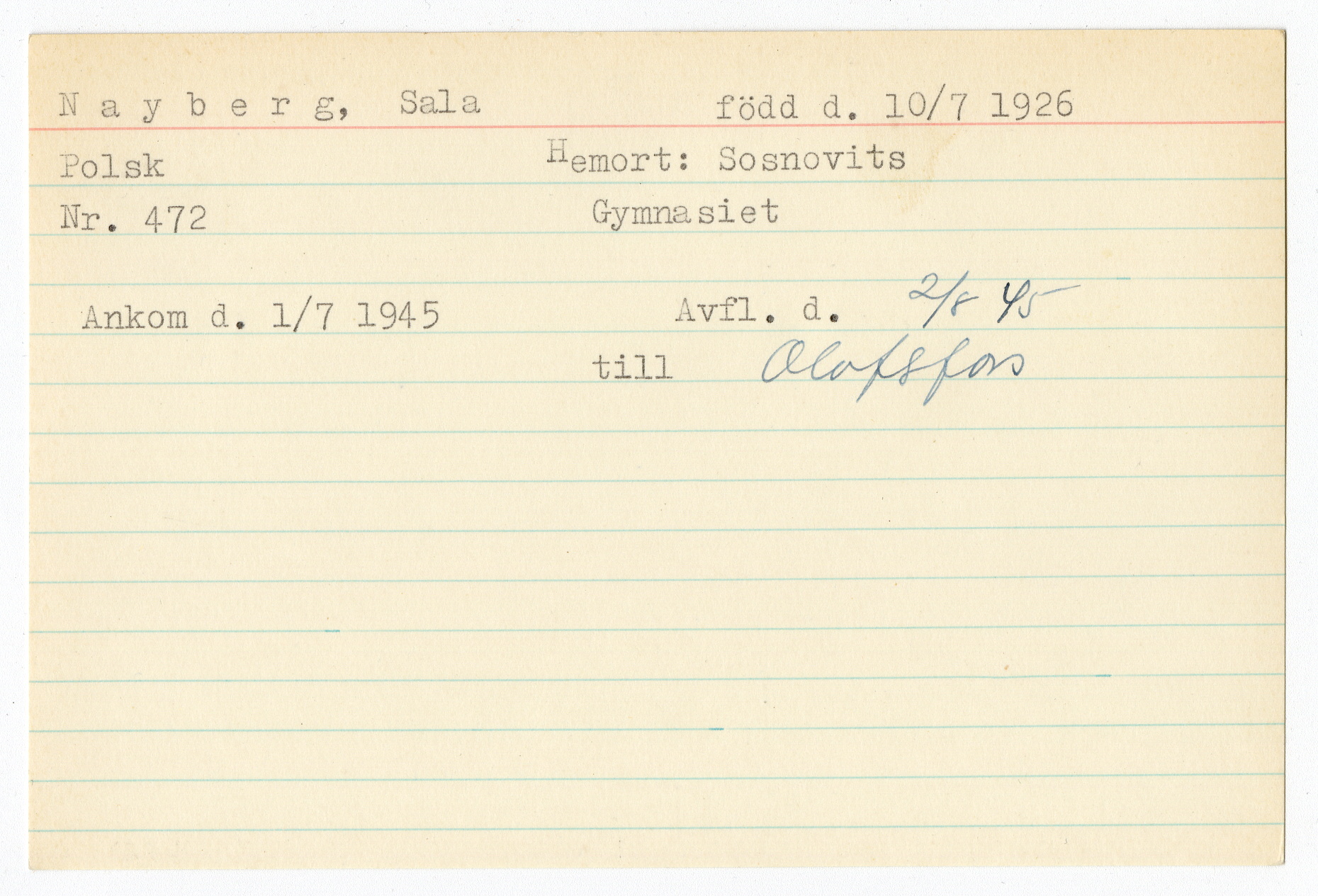 Ett skrivkort med patientuppgifter gällande Sala Nayberg.