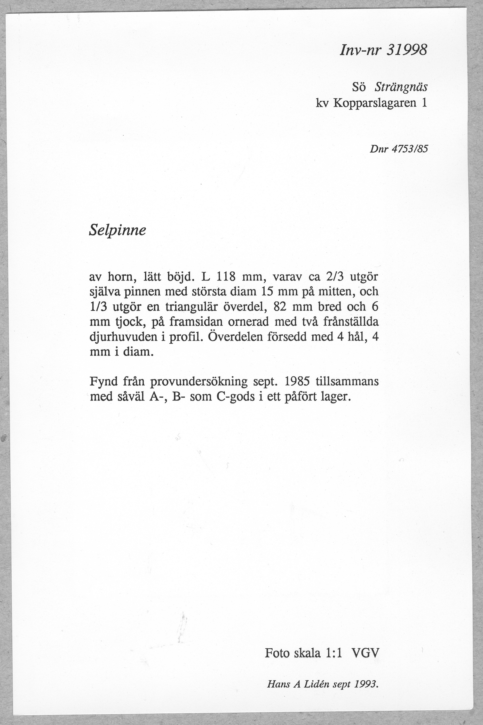Rapport - Kv Kopparslagaren 1, Strängnäs, Södermanland, 1985 |