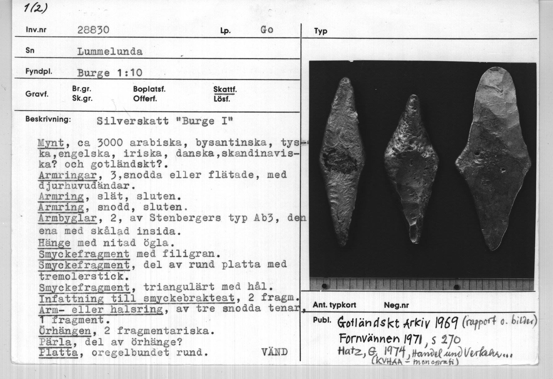 Allmän beskrivning: Skattfynd som påträffades vid plöjning 1967. Efterundersöktes av Erik Nylén.