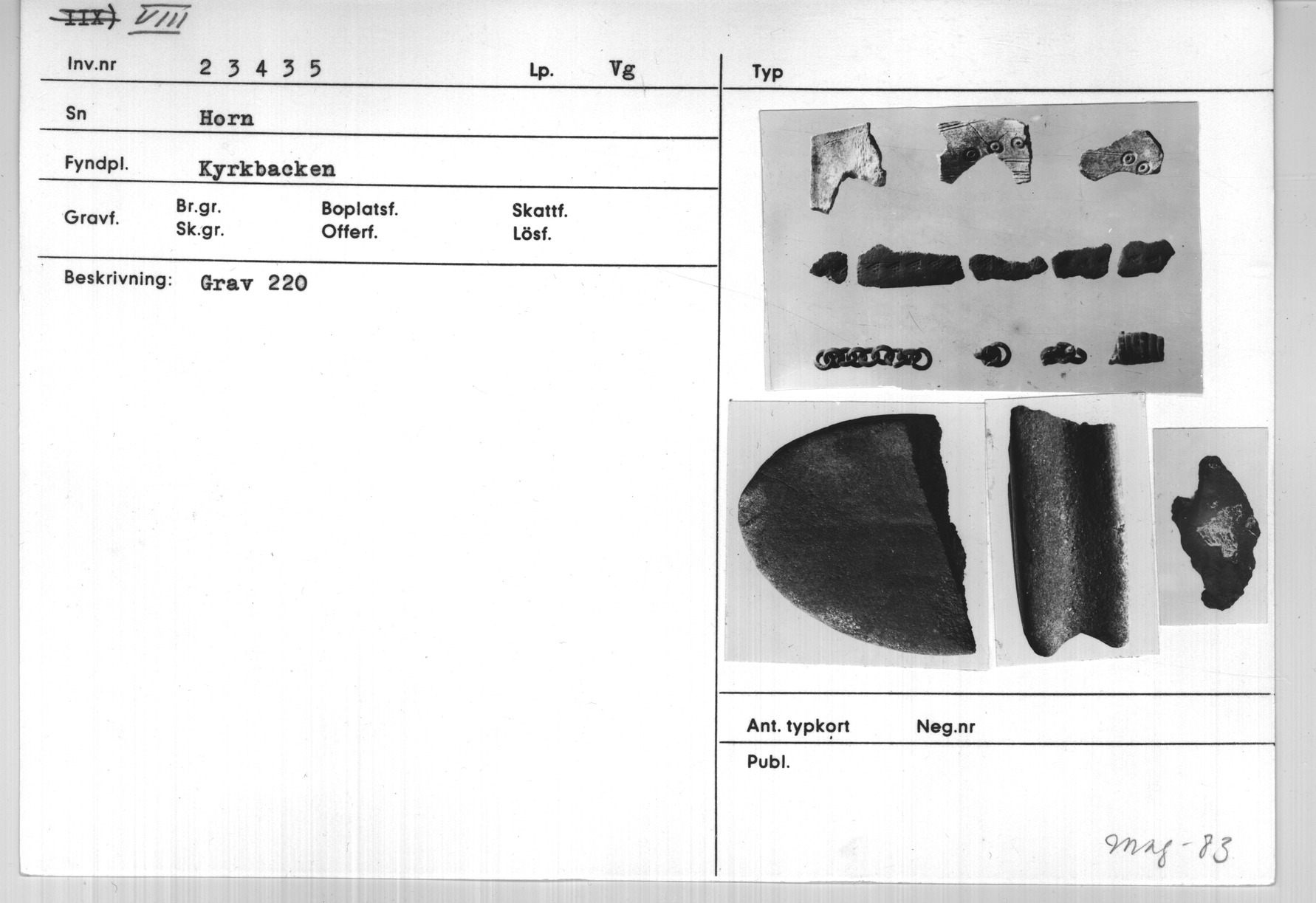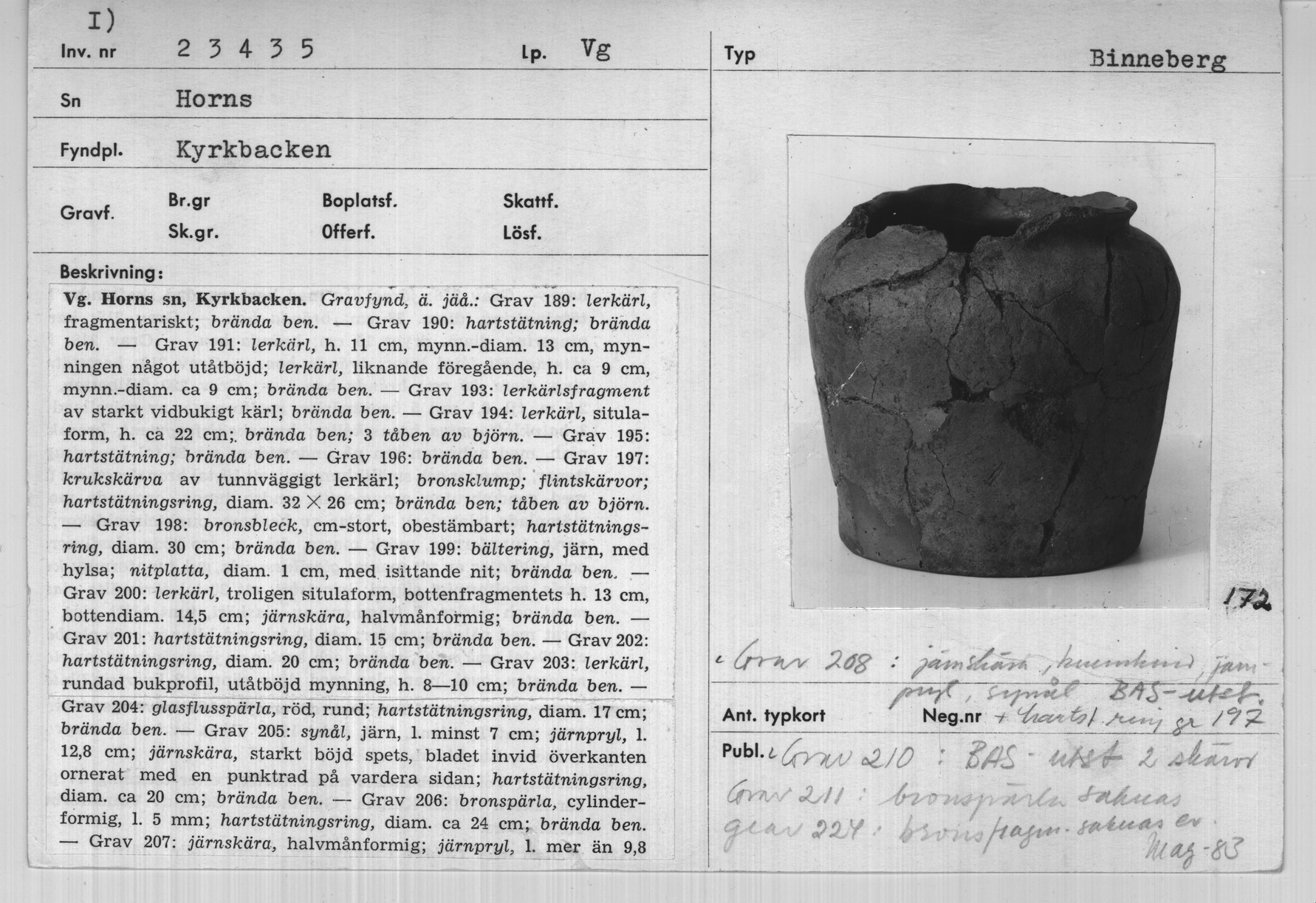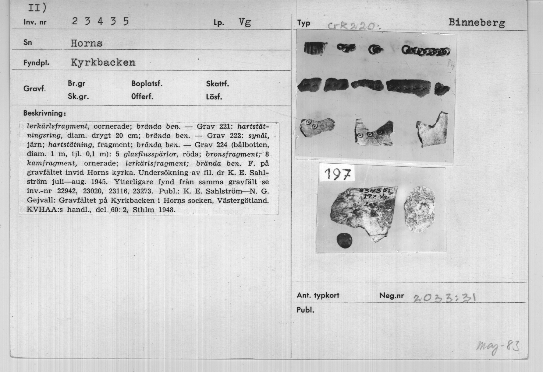 Sahlström, Karl Elias et al. Gravfältet på kyrkbacken i Horns socken, Västergötland. Kungliga Vitterhets Historie och Antikvitets Akademien. KUNGL. VITTERHETSHISTORIE OCH ANTIKVITETS AKADEMIENS HANDLINGAR:BD 60:2. |