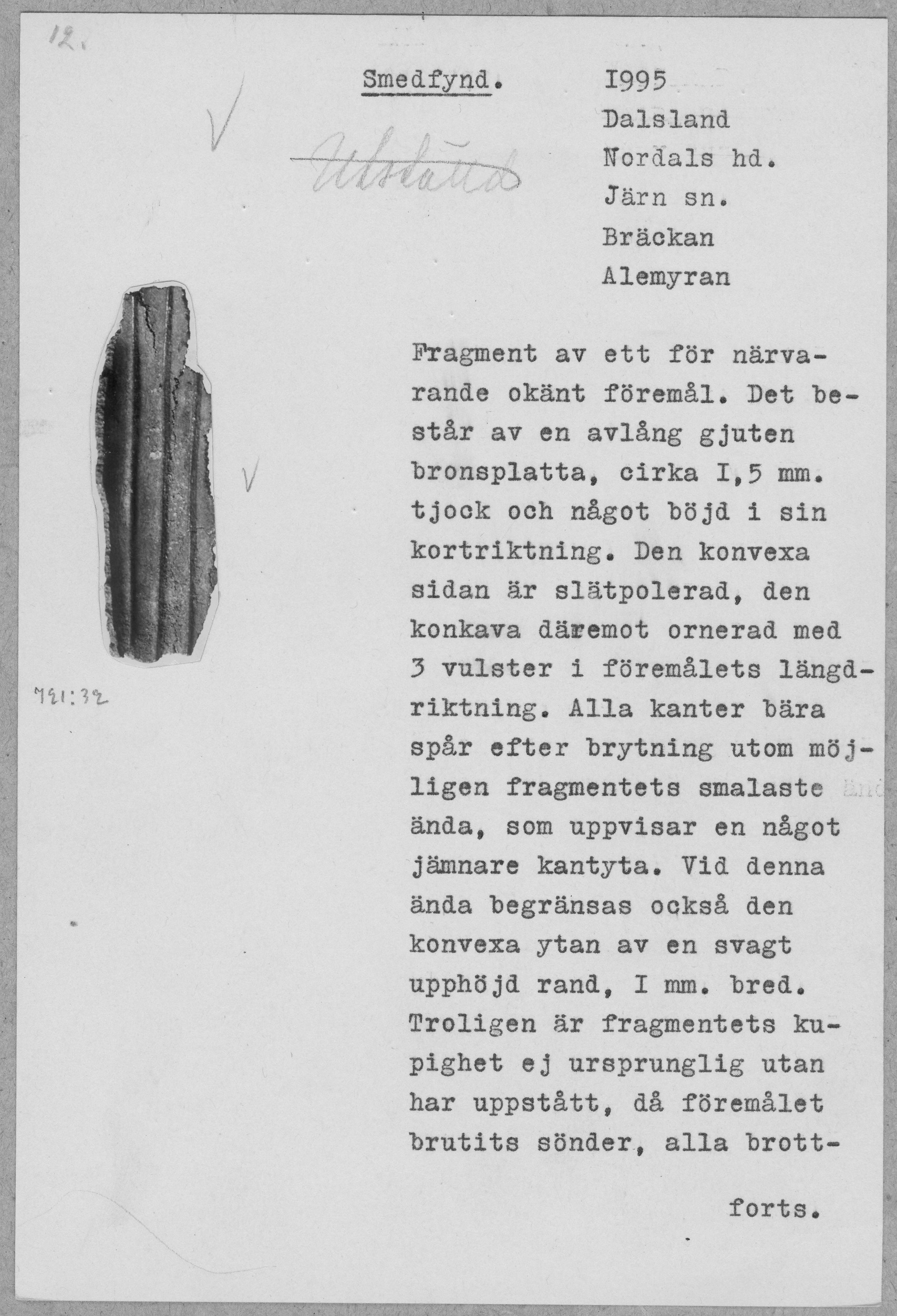 Media: Historiska museet. Historiska museet/SHM, (PDM) Upphovsrätten till detta verk har gått ut och är därmed fritt att använda på alla sätt. Ange gärna upphovsperson om denne är känd.