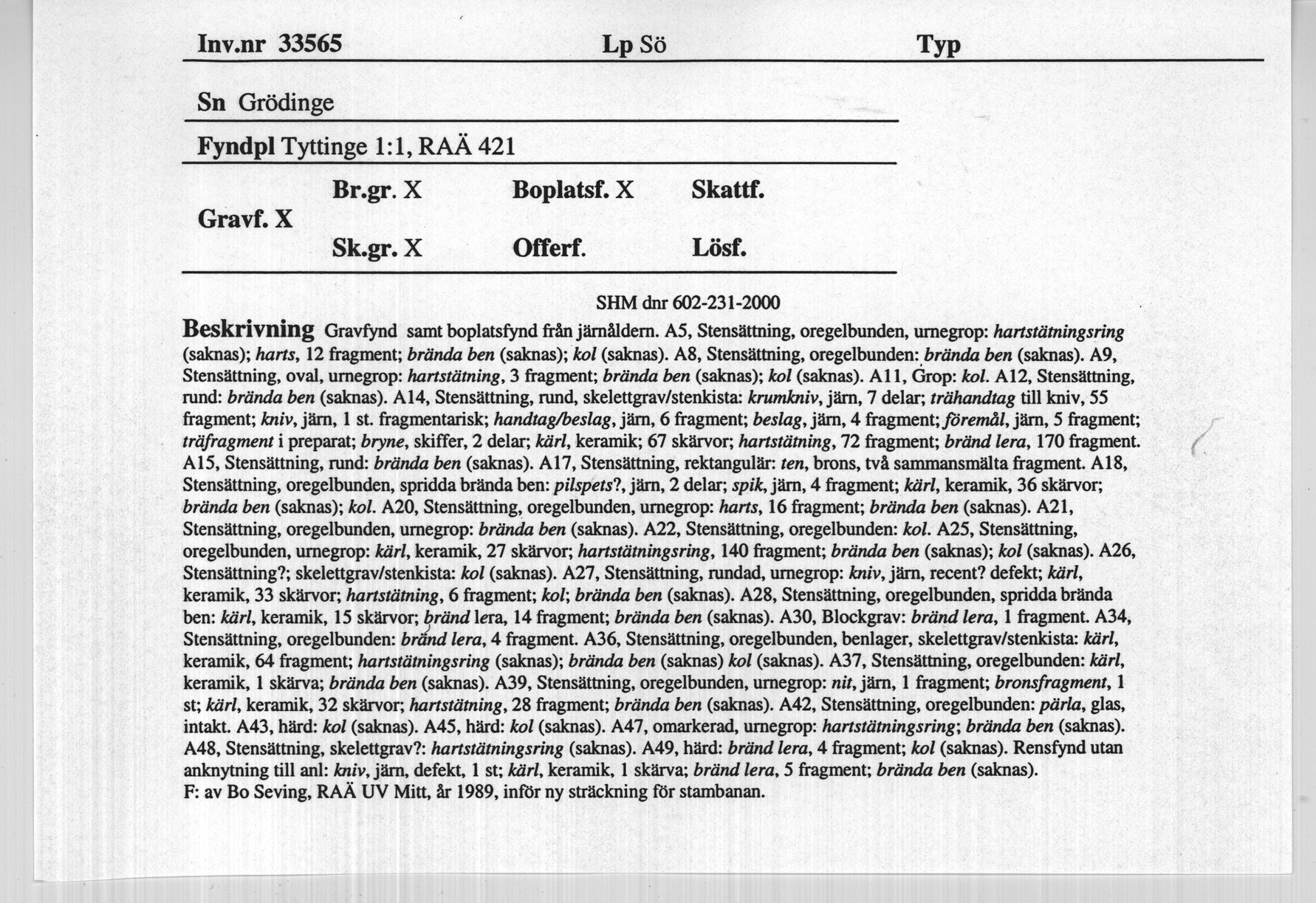 Gravfält och boplats vid Tyttinge. Grödingebanan |