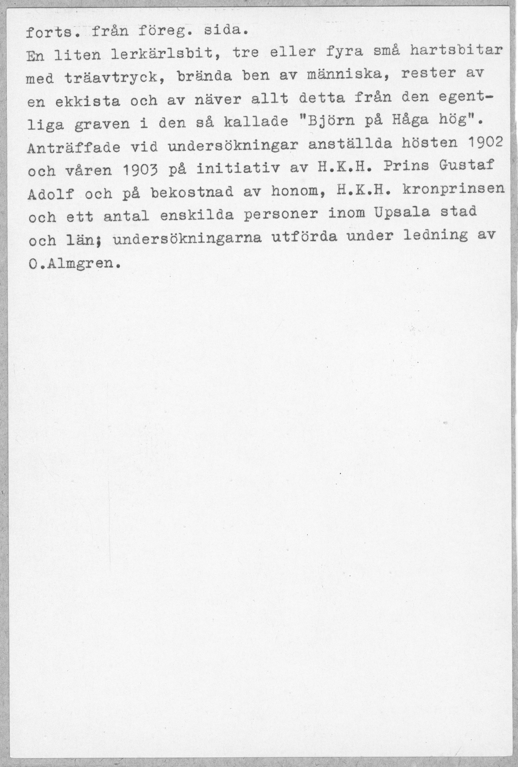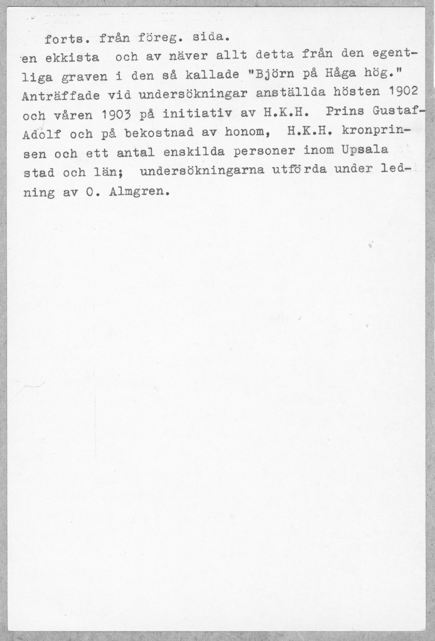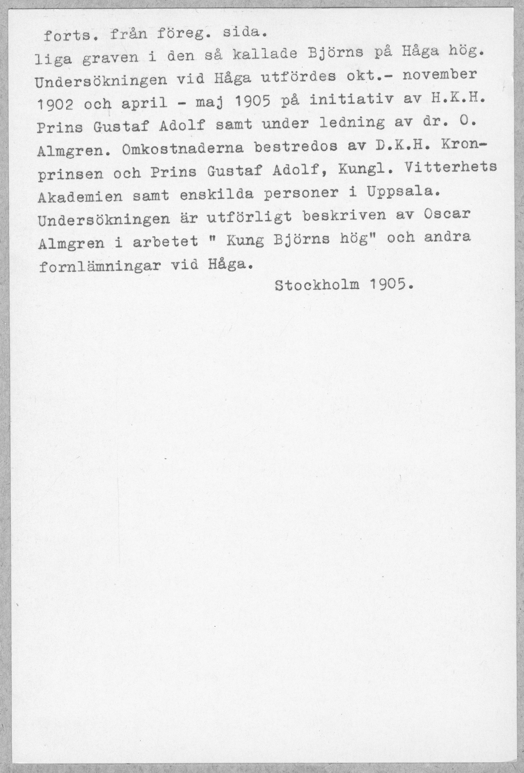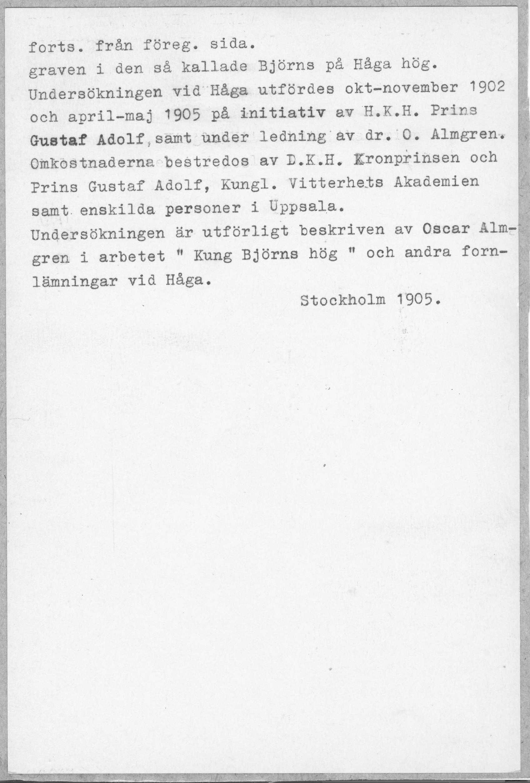 Allmän beskrivning: Undersökningarna vid Håga utfördes på initiativ av prins Gustav Adolf under ledning av Oscar Almgren.