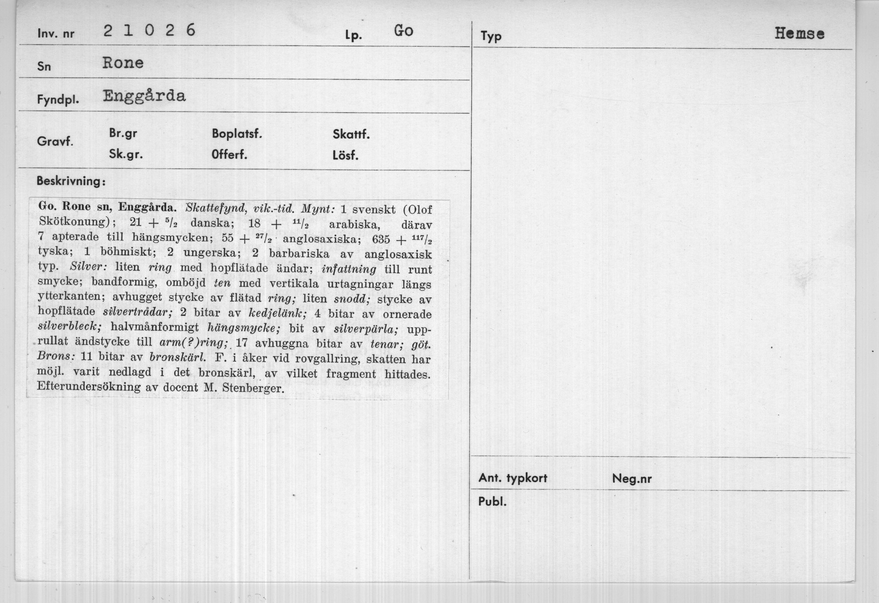 Allmän beskrivning: Efterundersökning av Stenberger