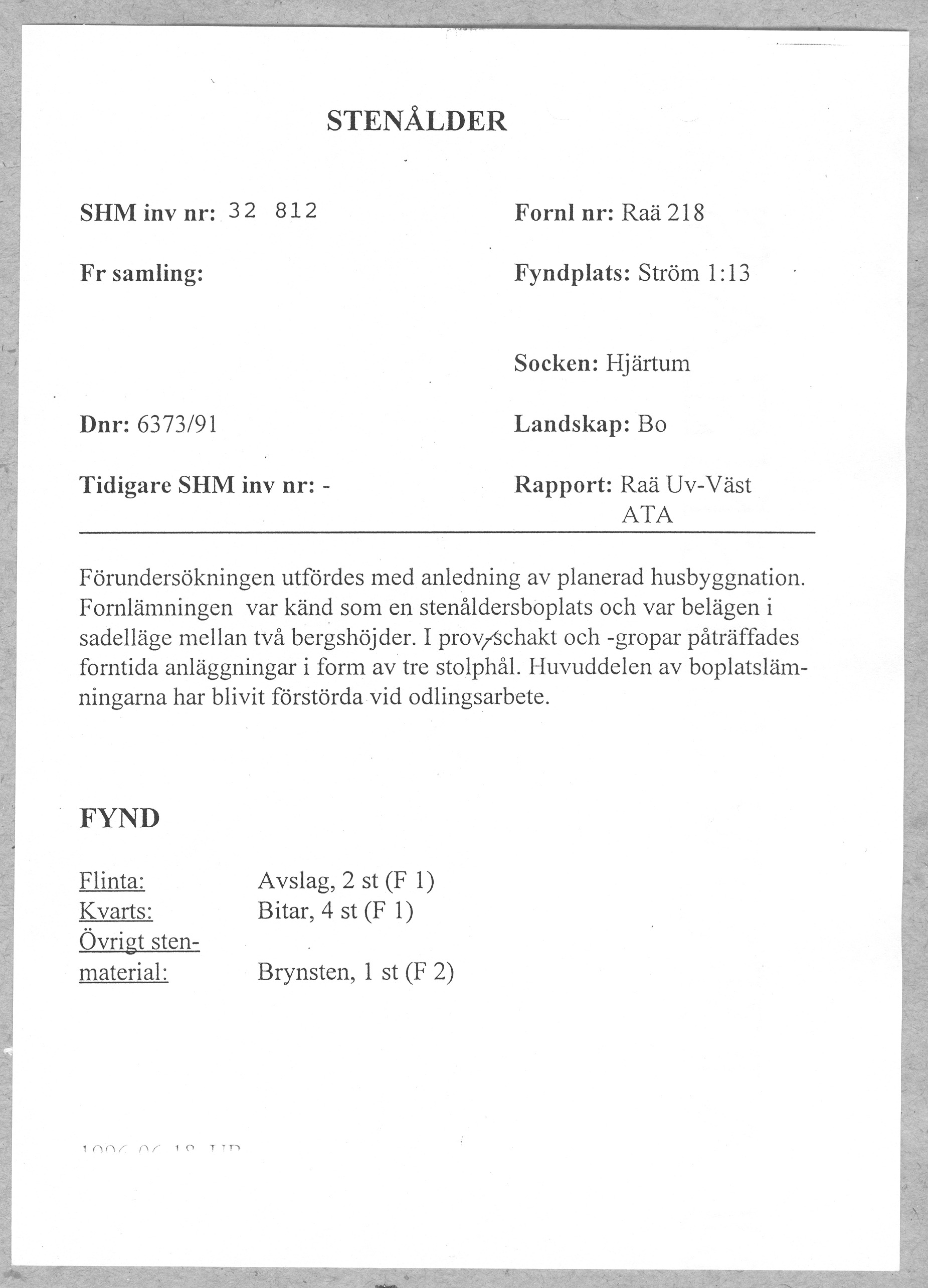 Boplatsfynd, Stenålder