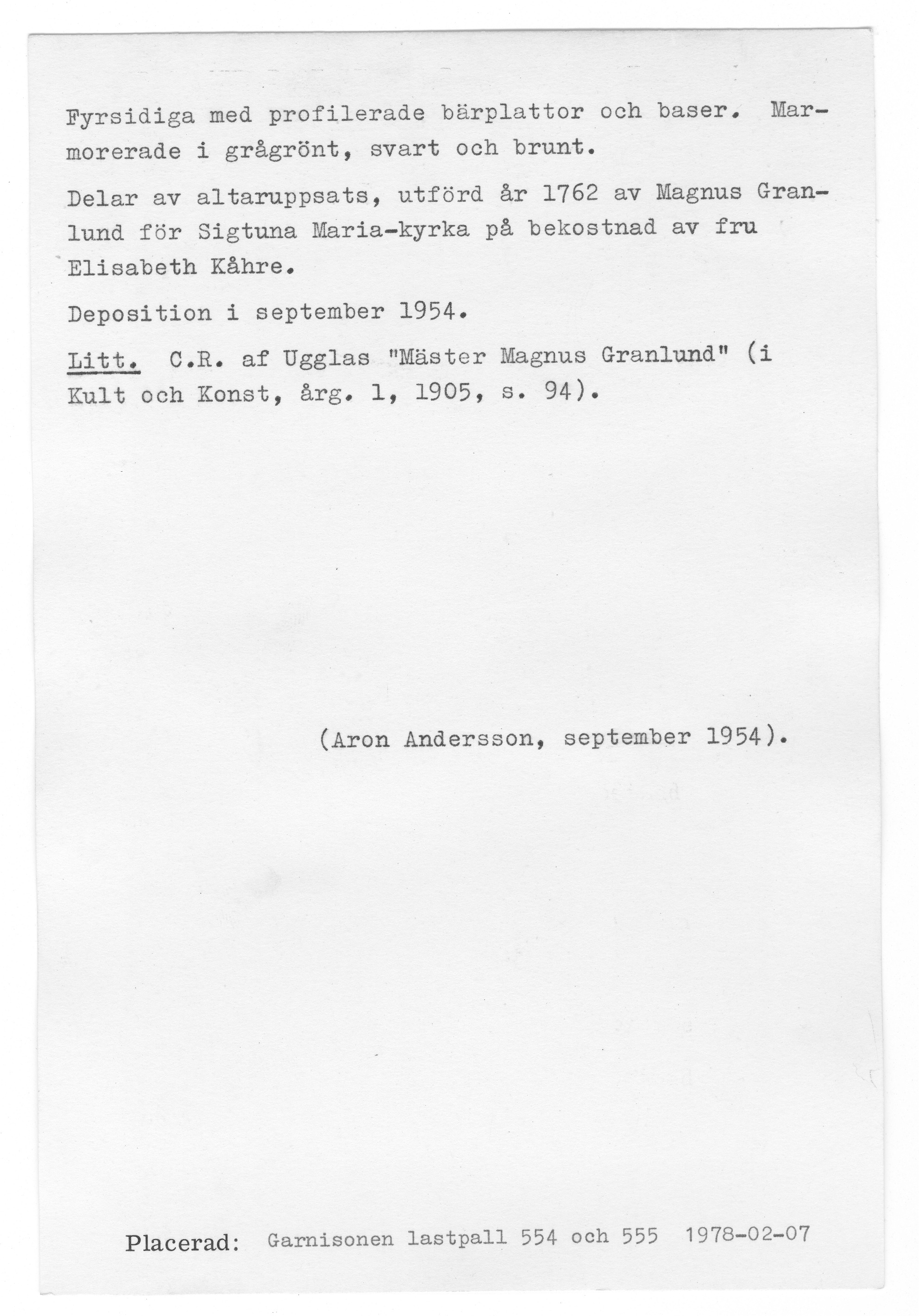 | Omnämns i katalog | |