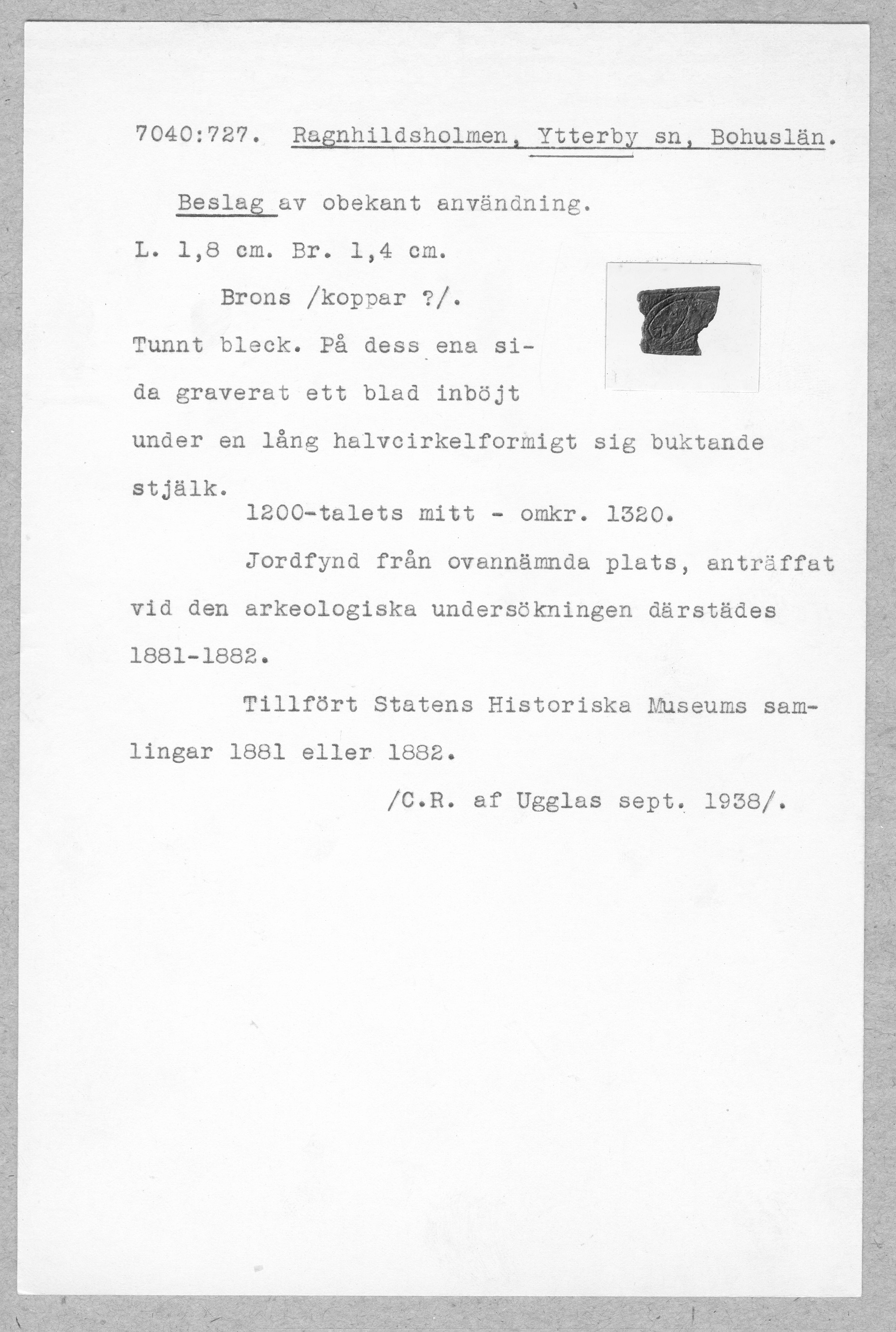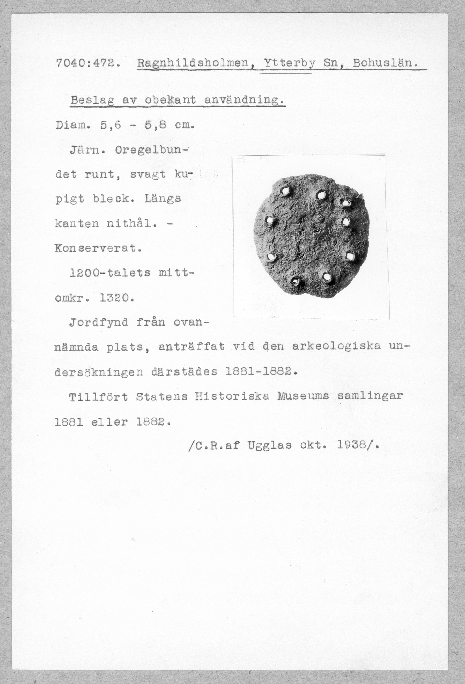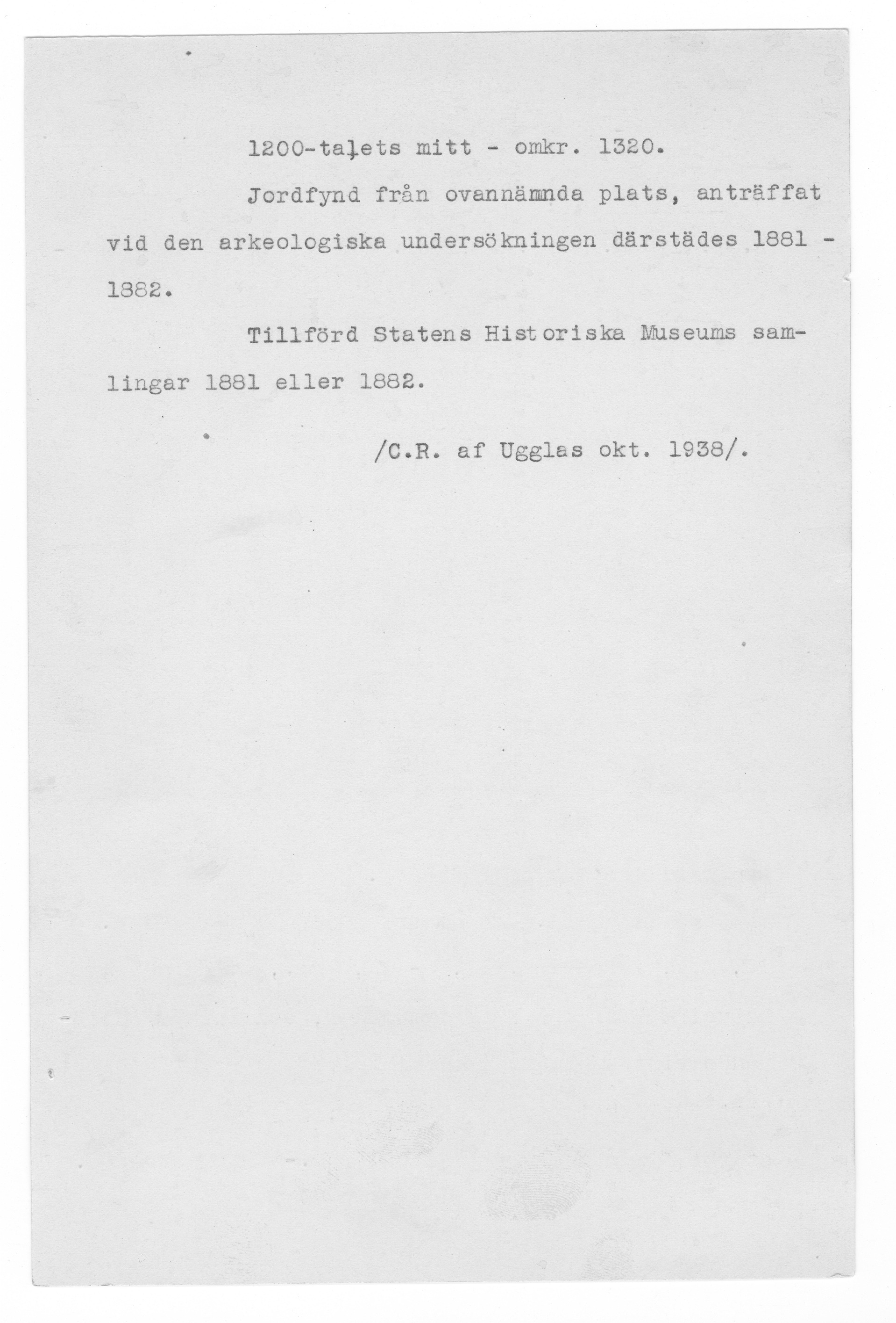 Upphov: Historiska museet/SHM (PDM) Upphovsrätten till detta verk har gått ut och är därmed fritt att använda på alla sätt. Ange gärna upphovsperson om denne är känd.