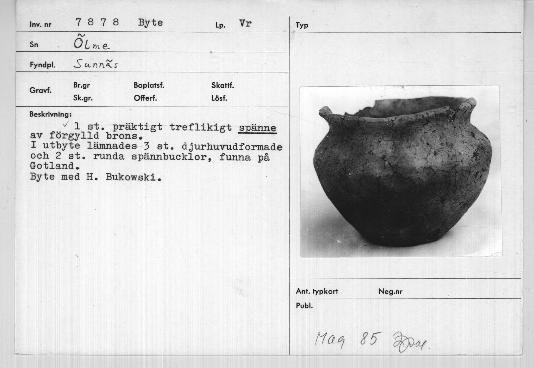Media: Historiska museet. Historiska museet/SHM, (PDM) Upphovsrätten till detta verk har gått ut och är därmed fritt att använda på alla sätt. Ange gärna upphovsperson om denne är känd.