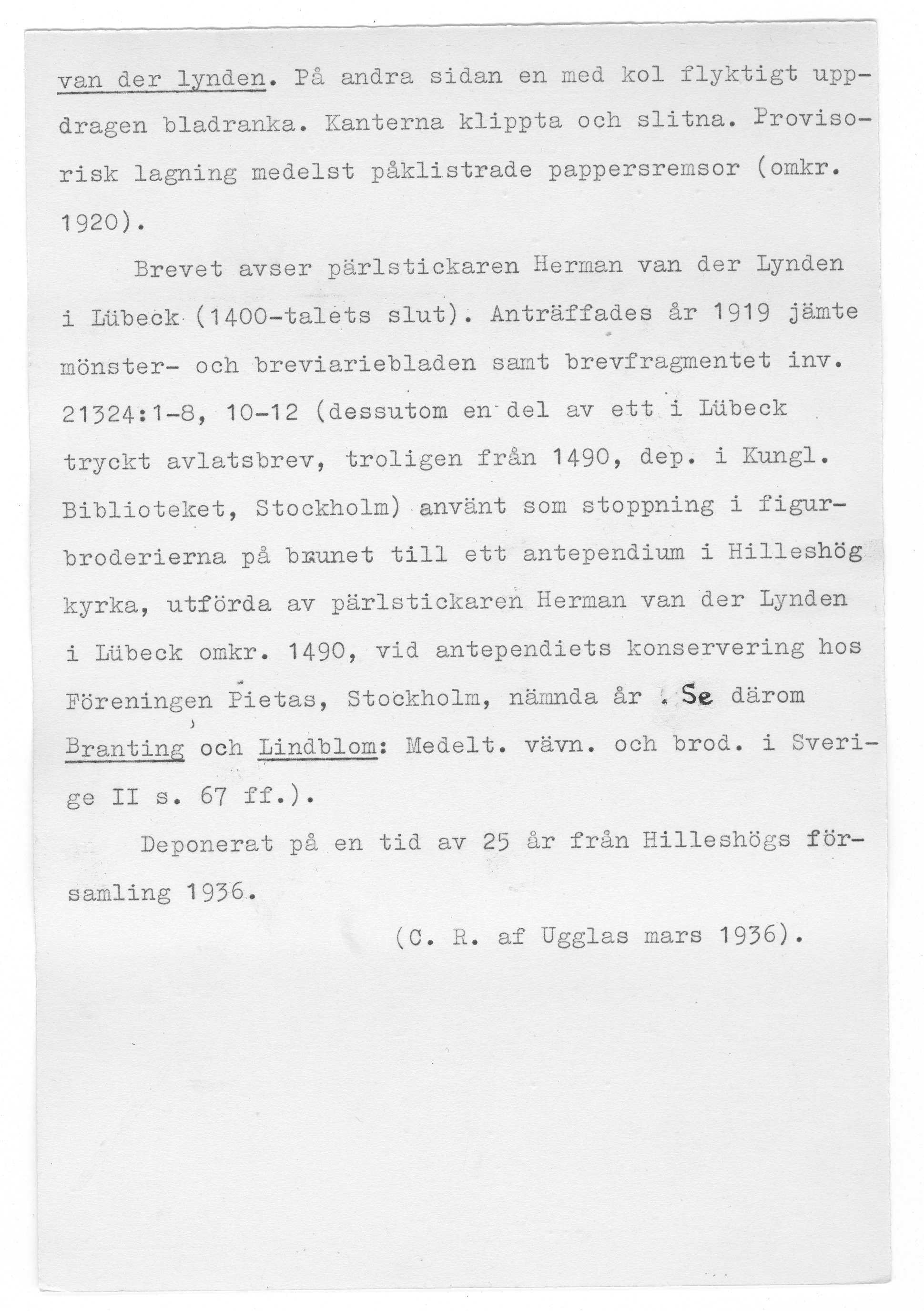 | Omnämns i katalog | |