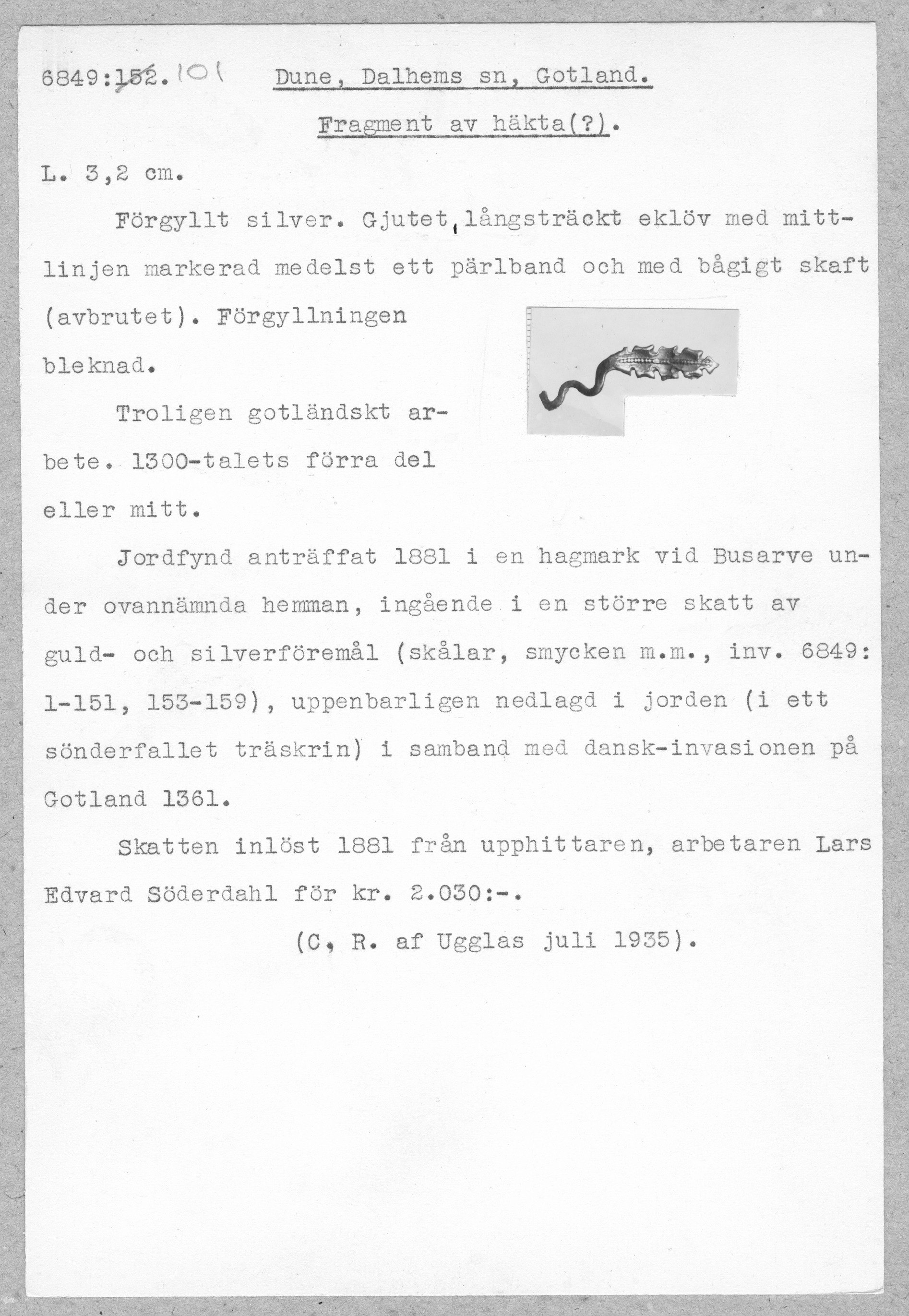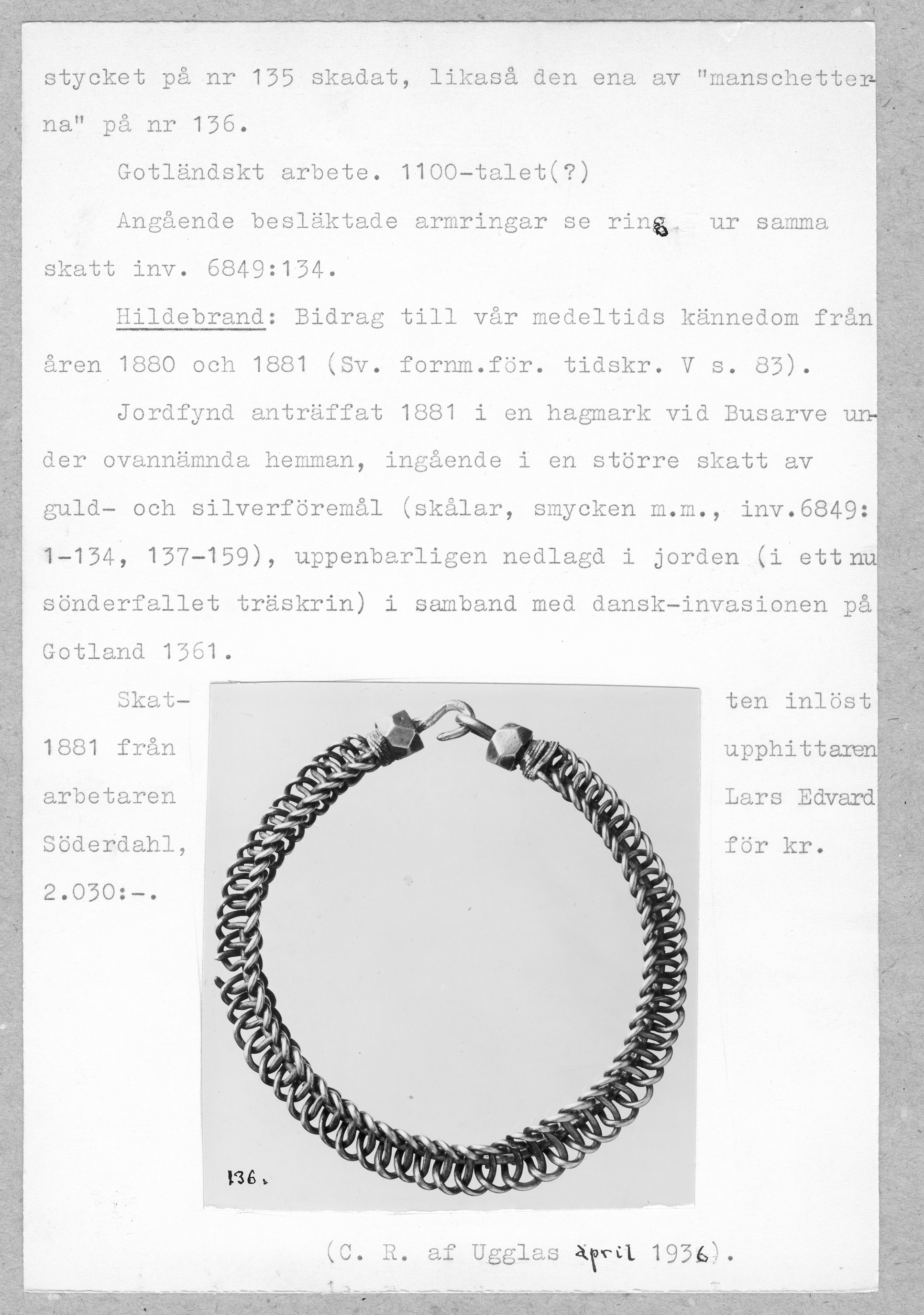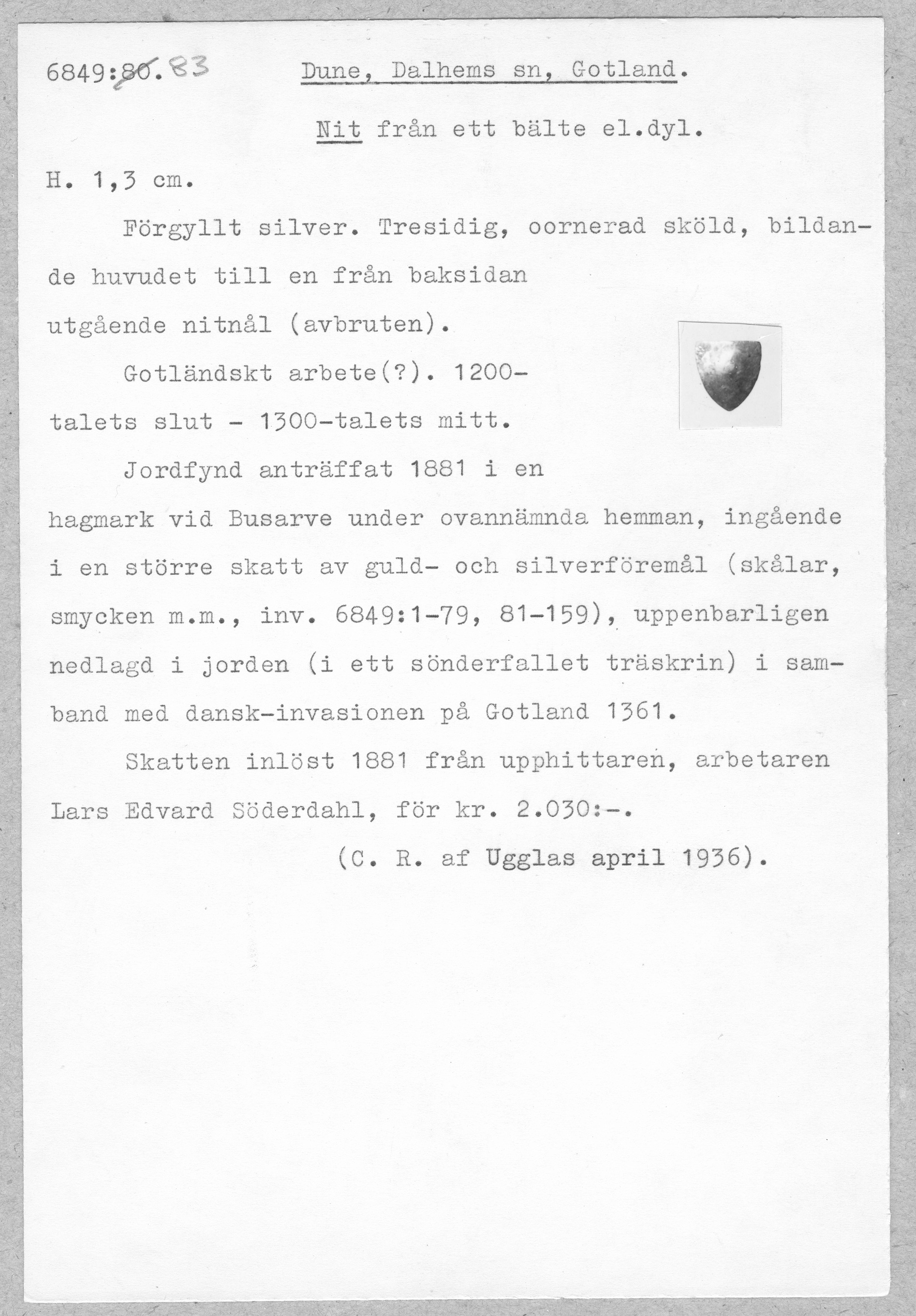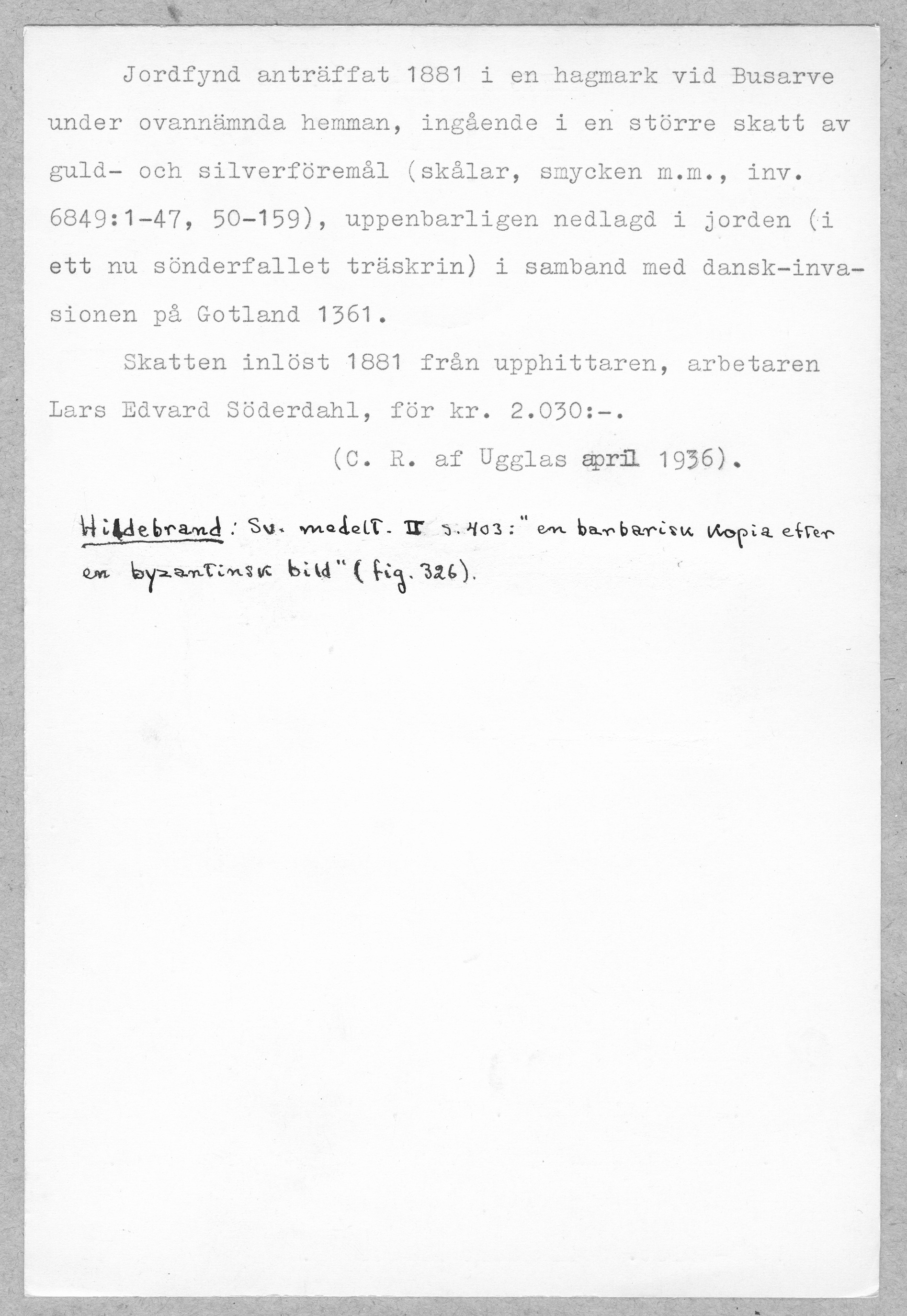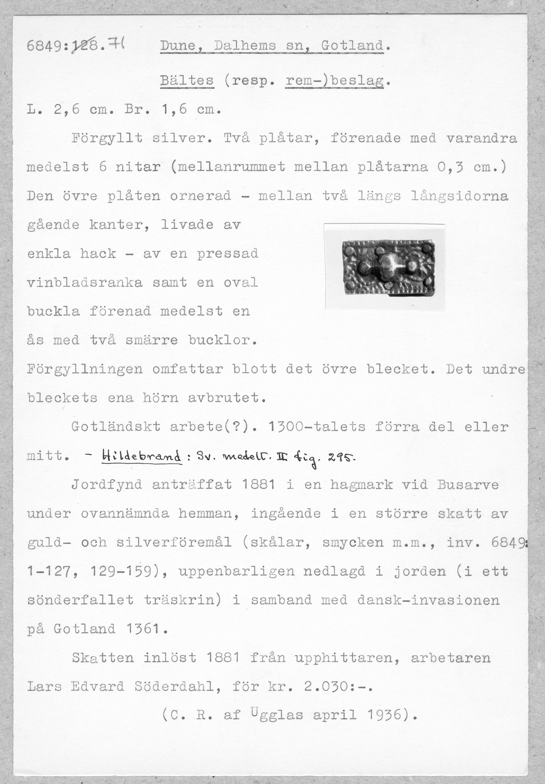 Media: Historiska museet. Historiska museet/SHM, (PDM) Upphovsrätten till detta verk har gått ut och är därmed fritt att använda på alla sätt. Ange gärna upphovsperson om denne är känd.