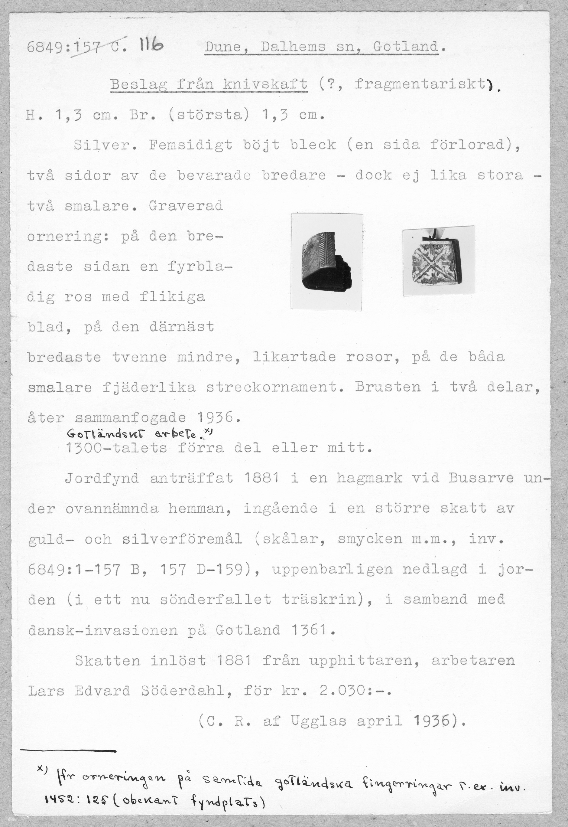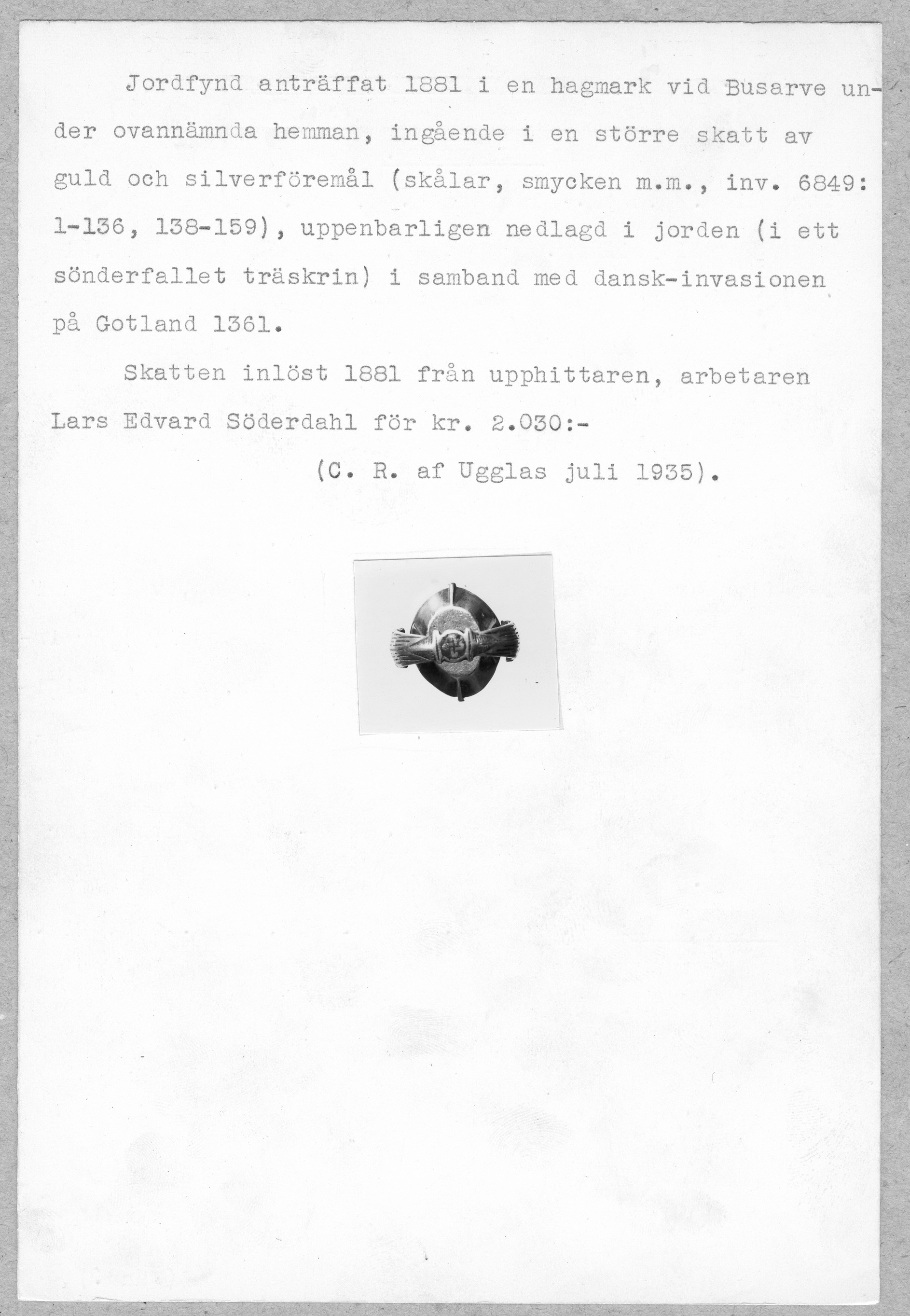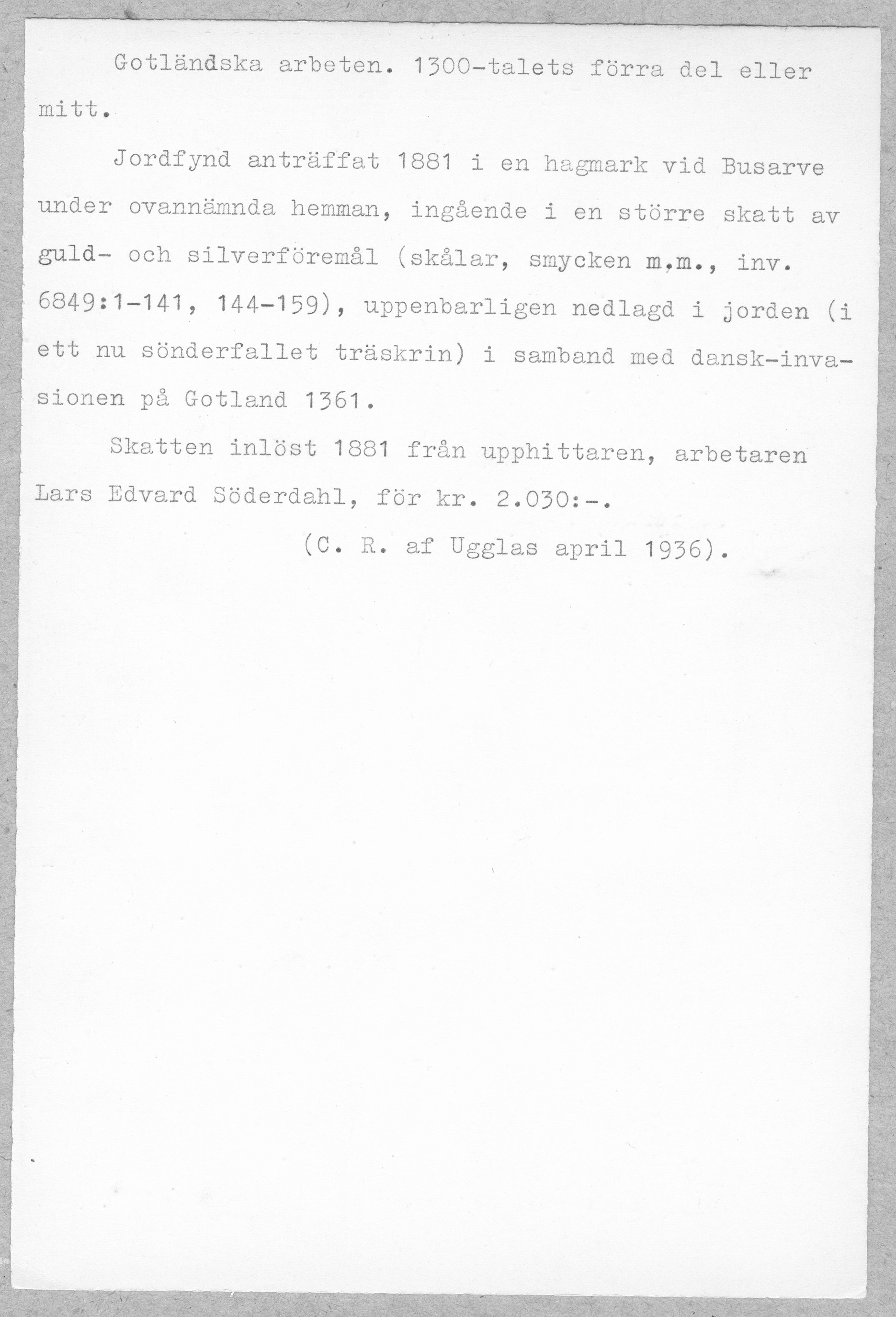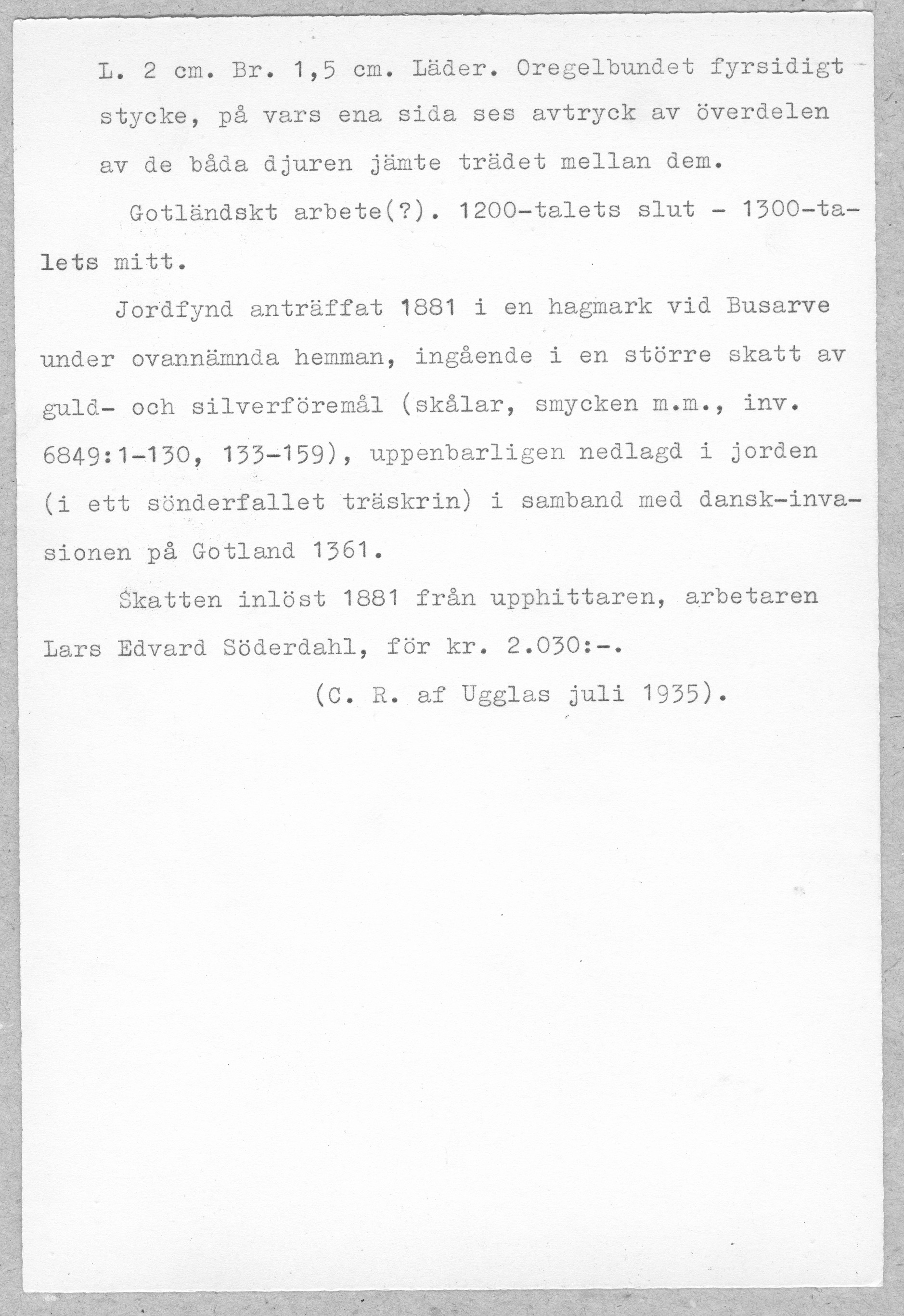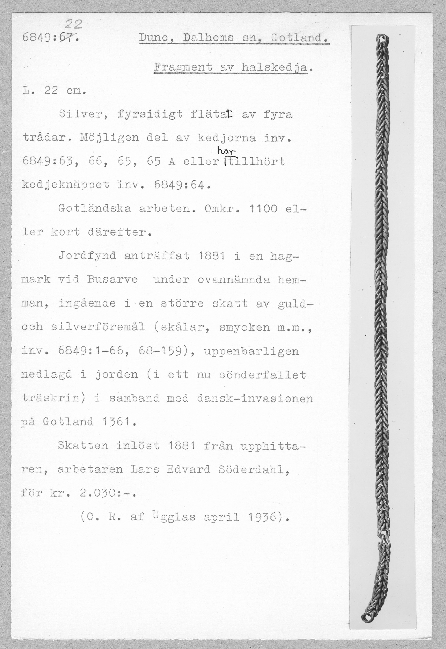 Media: Historiska museet. Historiska museet/SHM, (PDM) Upphovsrätten till detta verk har gått ut och är därmed fritt att använda på alla sätt. Ange gärna upphovsperson om denne är känd.