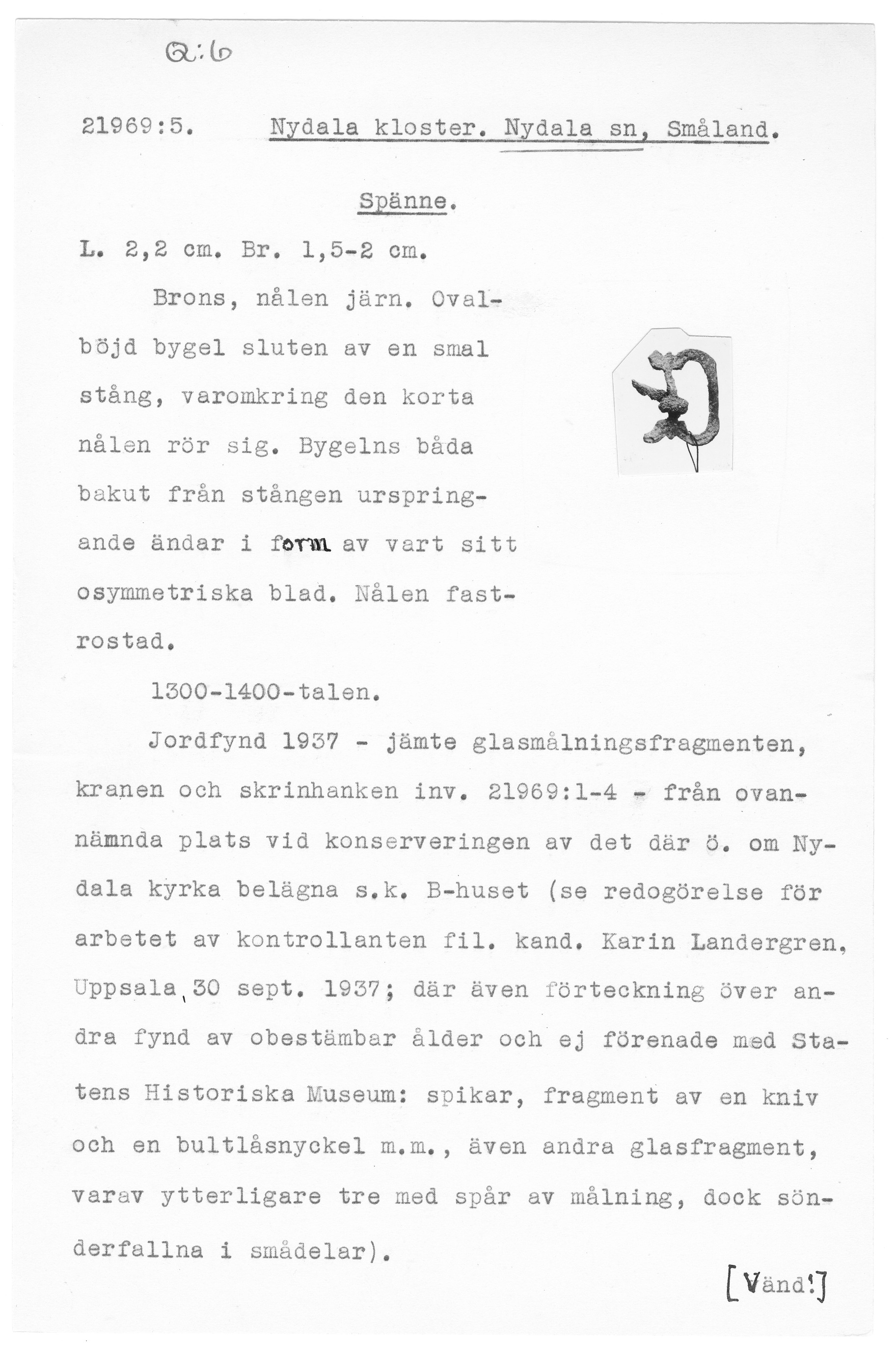 21969:5 \ Småland \ Nydala kloster. Nydala sn, Småland. \ Spänne \ Medeltid