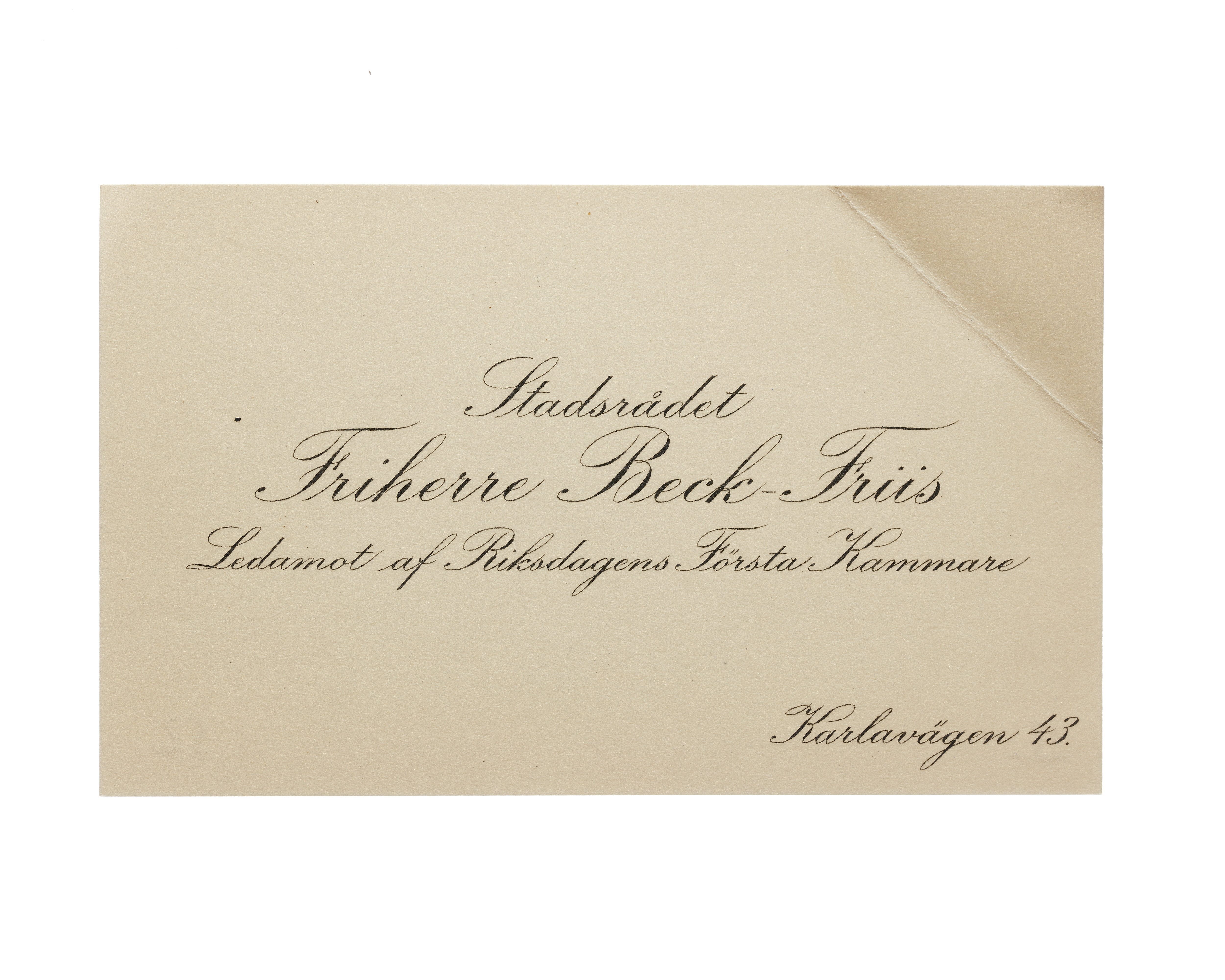 Visitkort från Statsrådet Beck-Friis, 1916-1918.