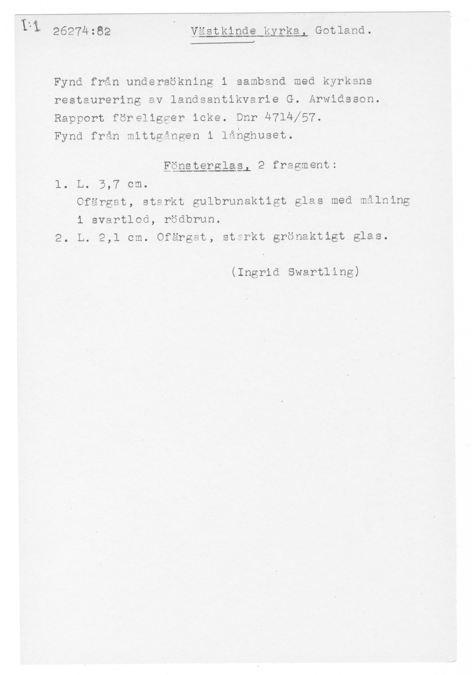 26274:82 \ Gotland \ Västkinde kyrka, Gotland. \ Fönsterglas, 2 fragment: \ Medeltid