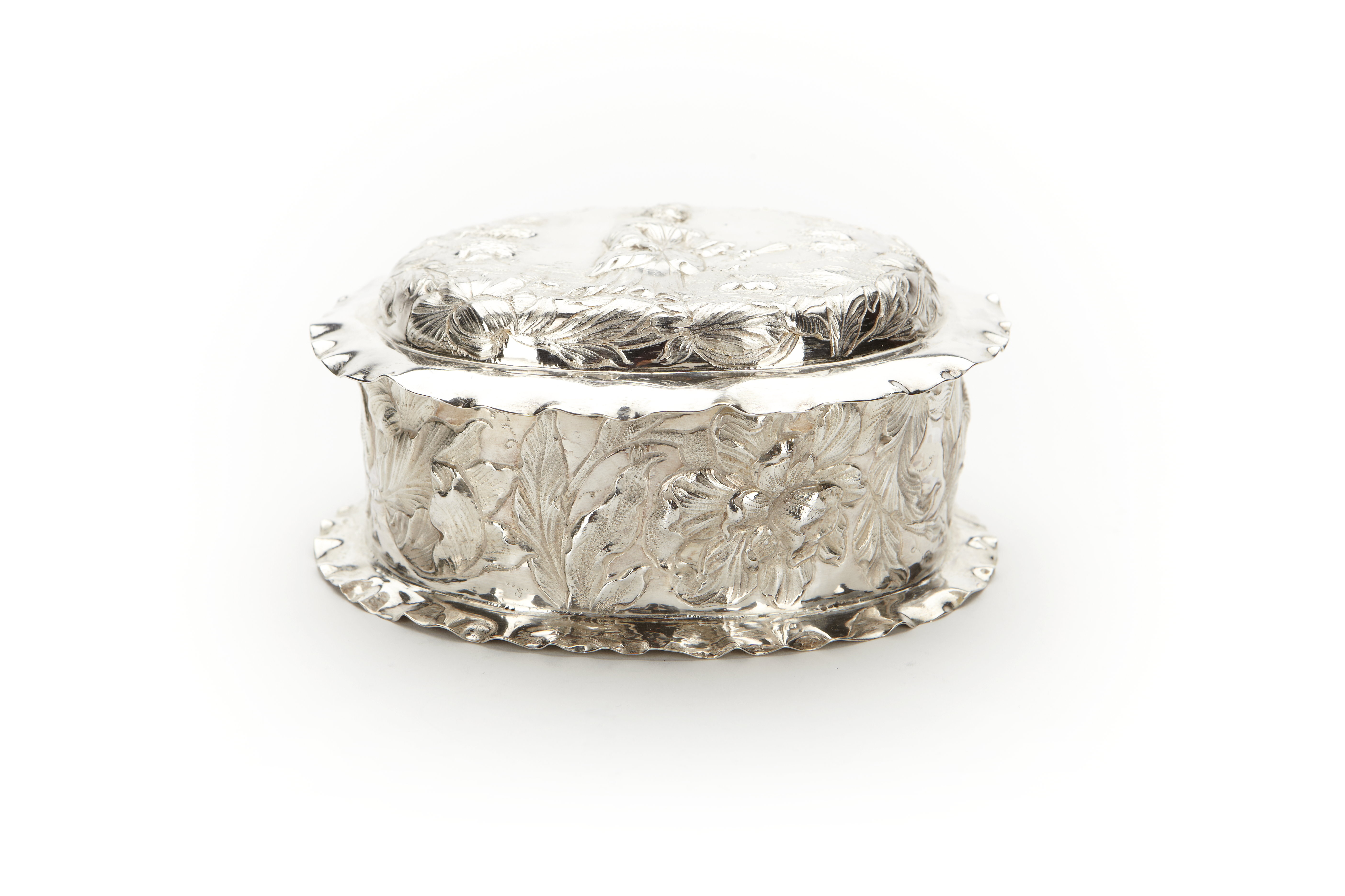 Oval ask med lock, av silver.