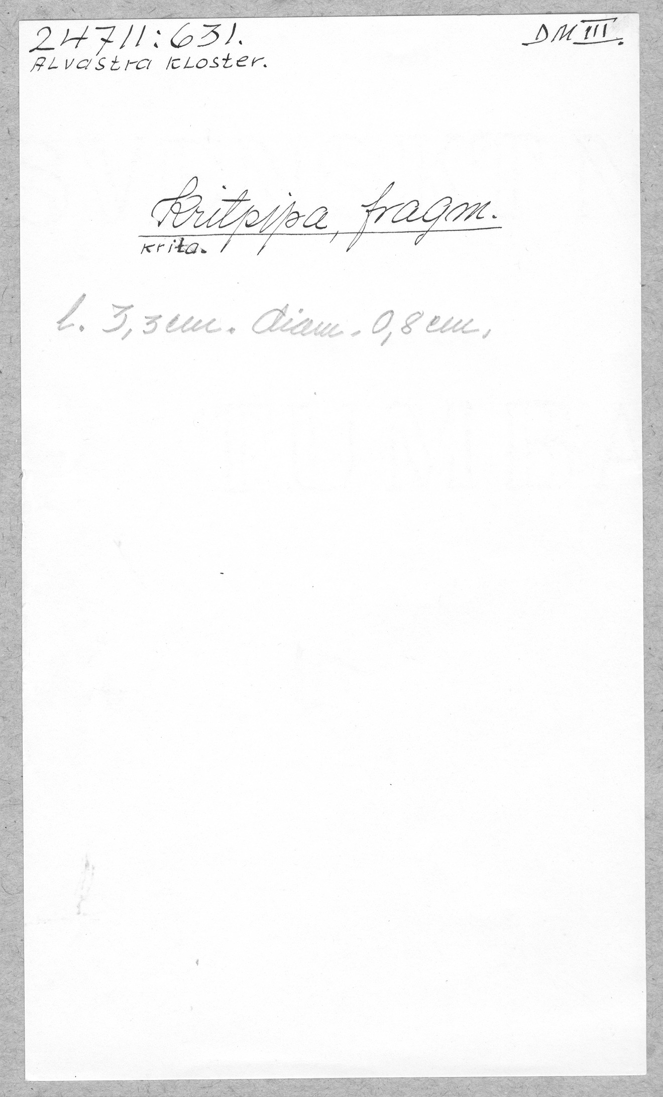 Ög, Västra Tollstad, Alvastra kloster. Kritpipa, fragm