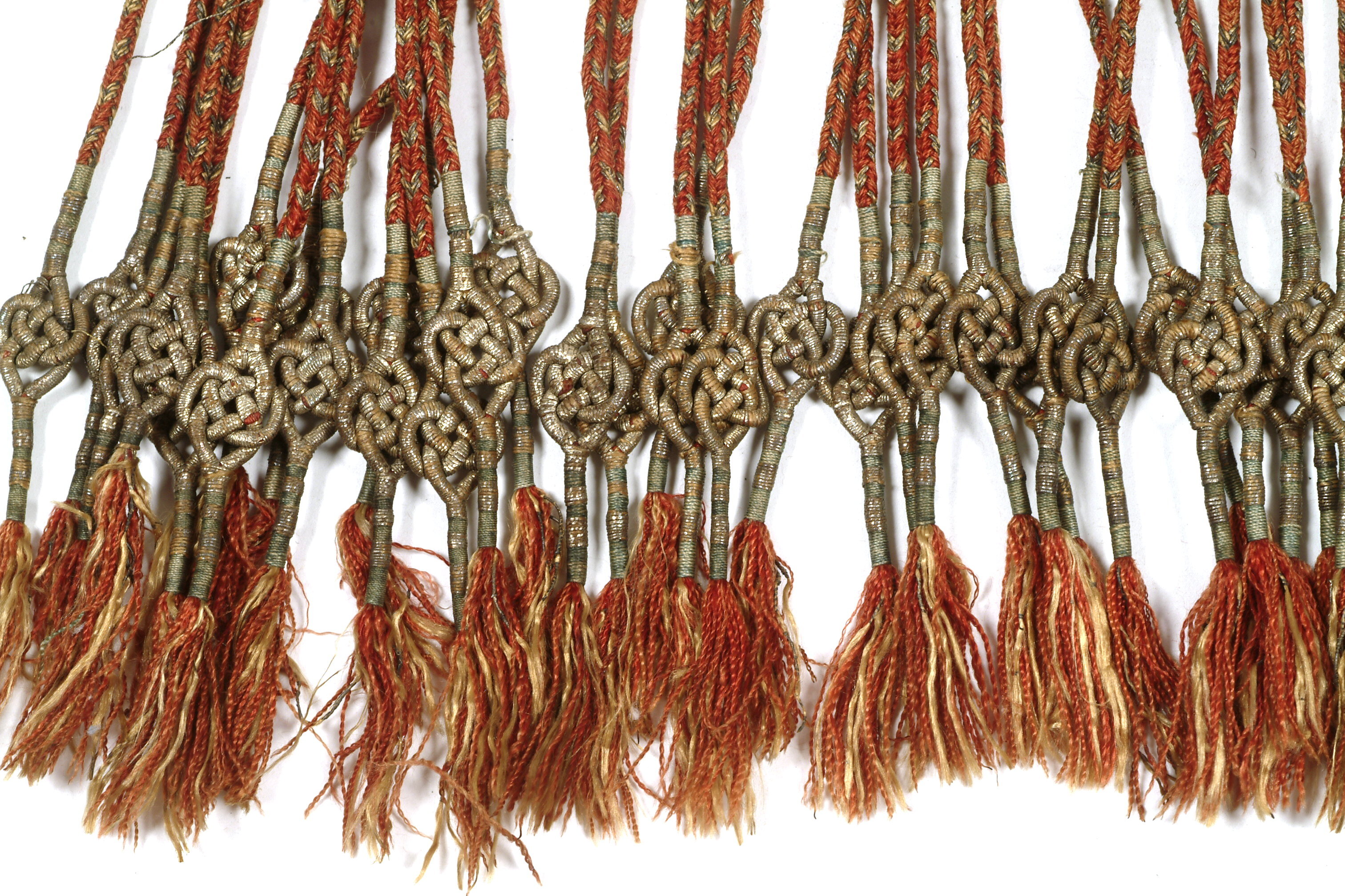 Frans av tvinnat rött silke och silvertråd, 1623-1625.