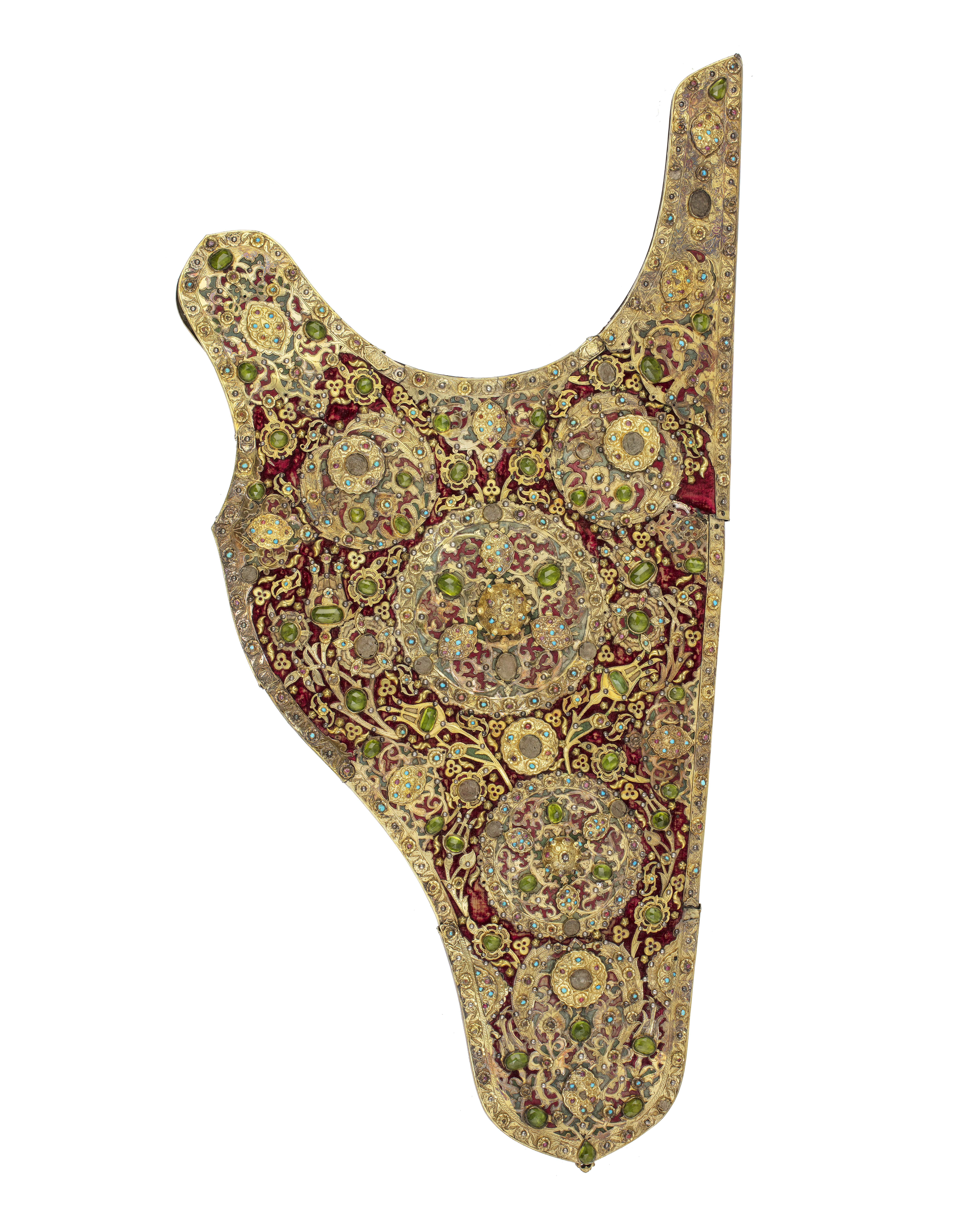 Bågkoger med ädelstenar och beslag av förgyllt silver i form av rankor och blommor, 1620-tal.