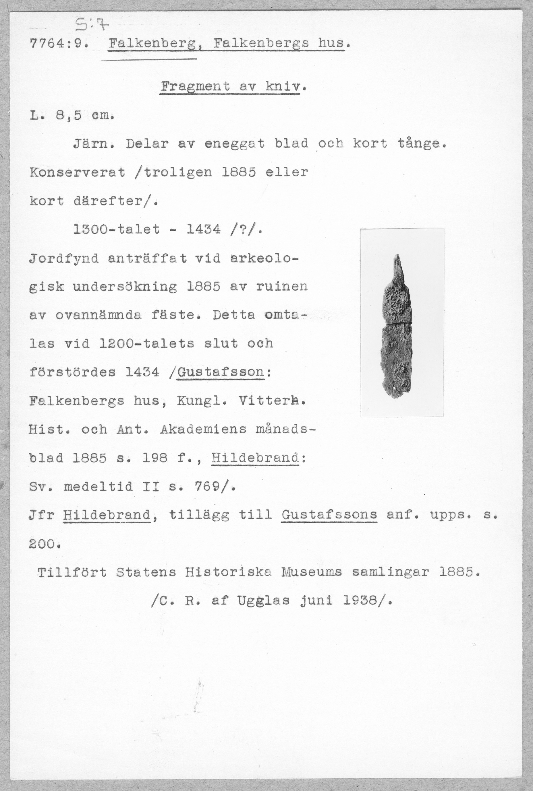 7764:9 \ Halland \ Falkenberg, Falkenbergs hus. \ Fragment av kniv \ Medeltid