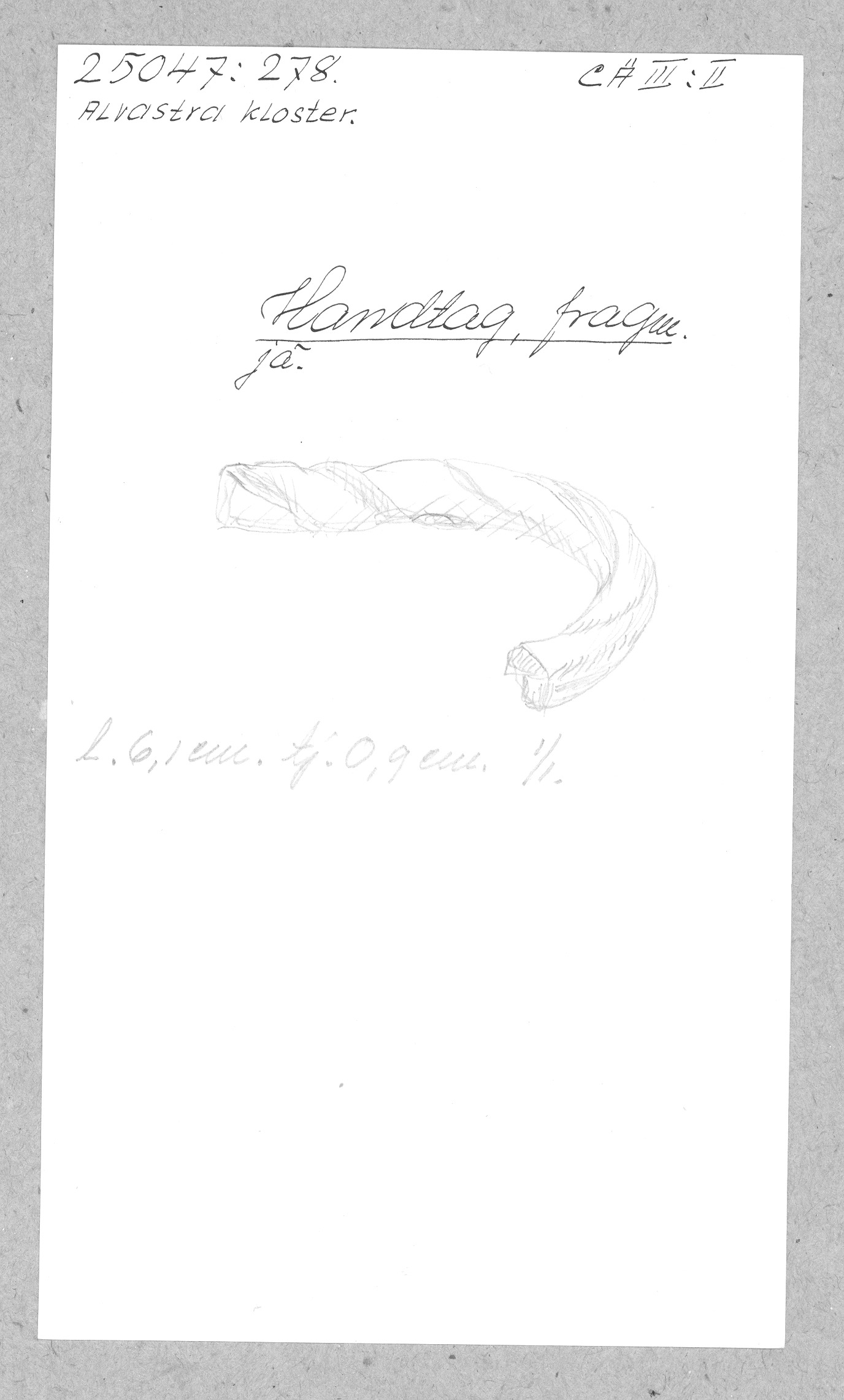 Ög, Västra Tollstad, Alvastra kloster. Handtag, fragm