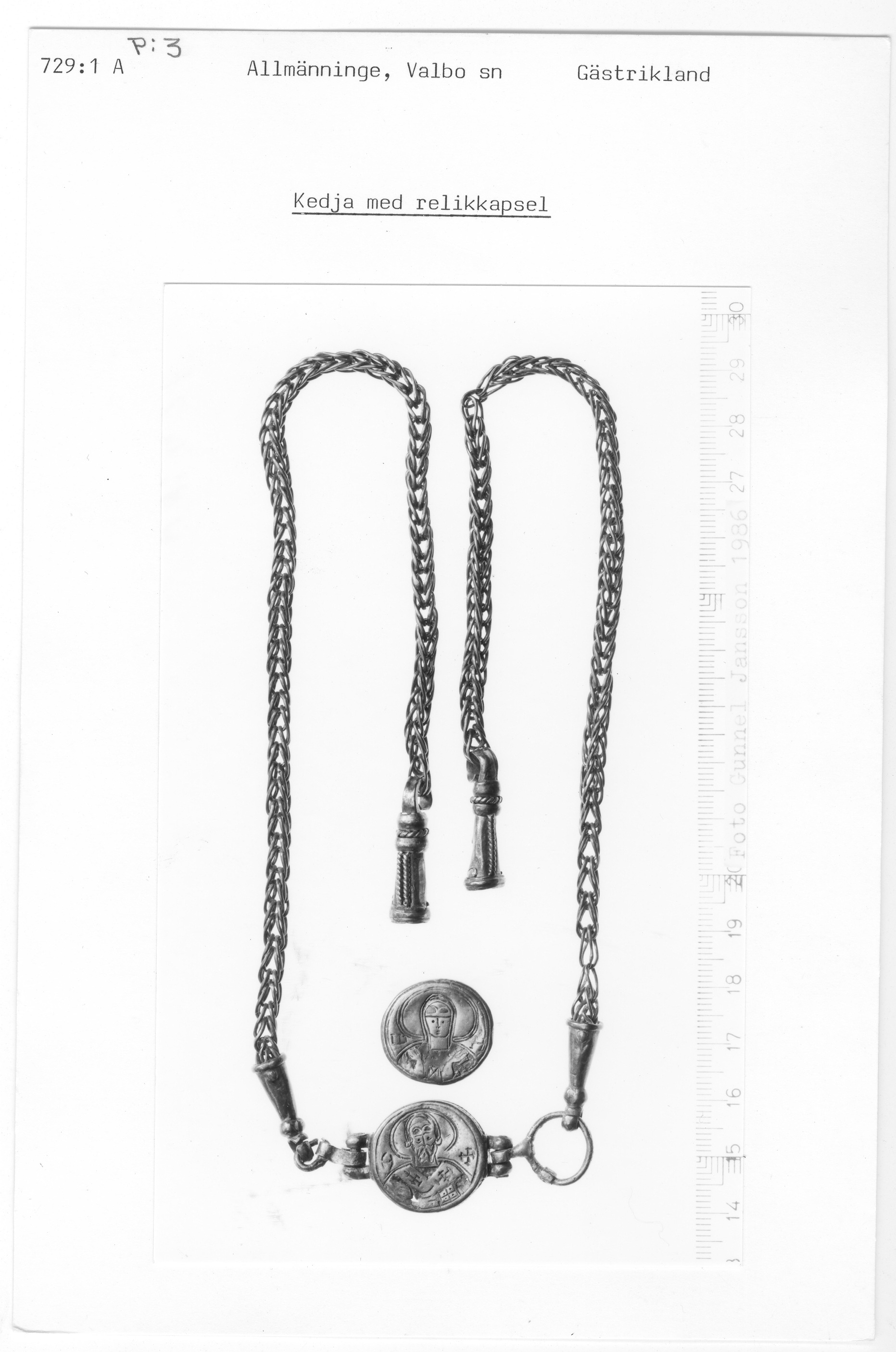 729:1 A \ Gästrikland \ Allmänninge, Valbo sn Gästrikland \ Kedja med relikkapsel \ Medeltid