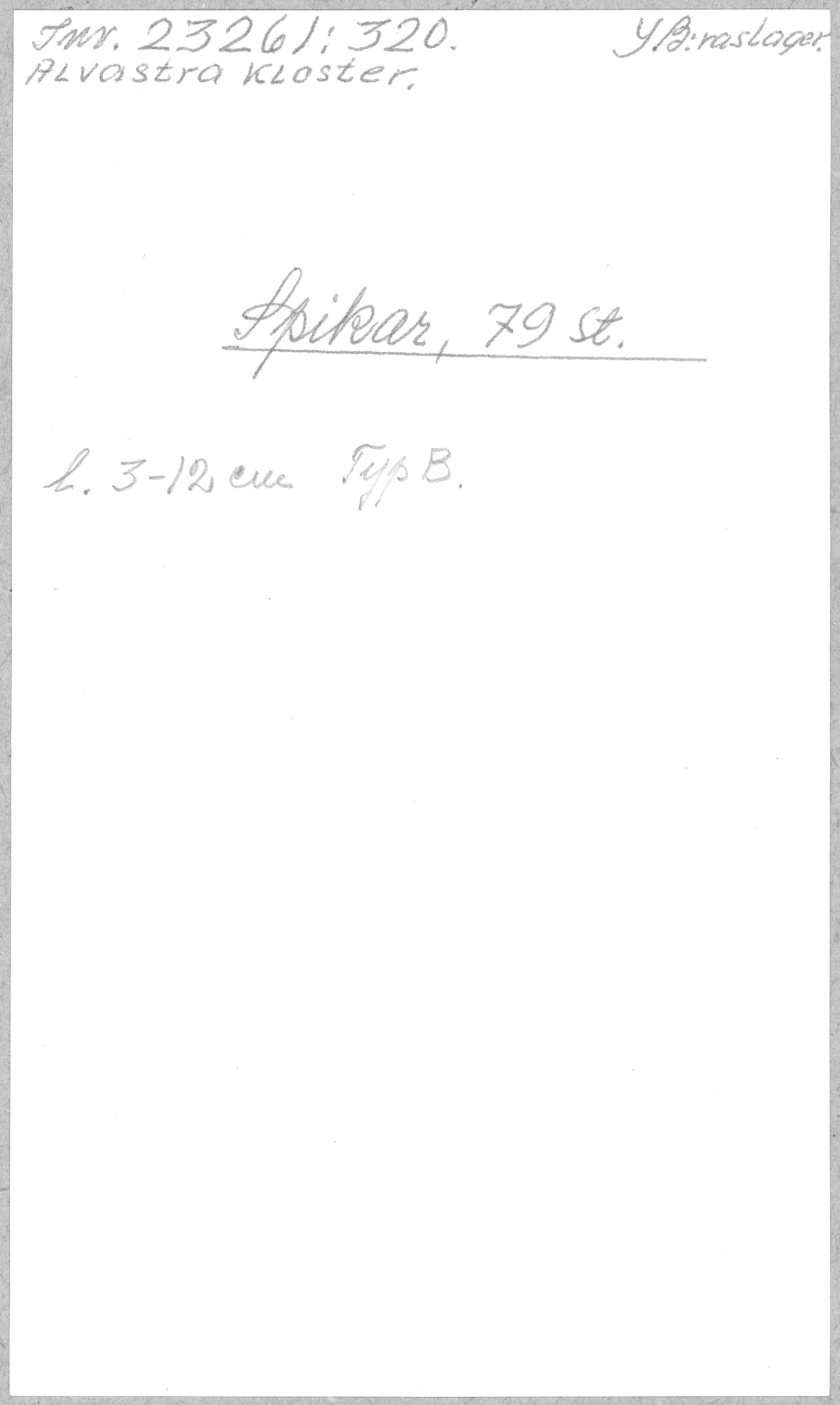 Ög, Västra Tollstad, Alvastra kloster. Spikar, 79 st