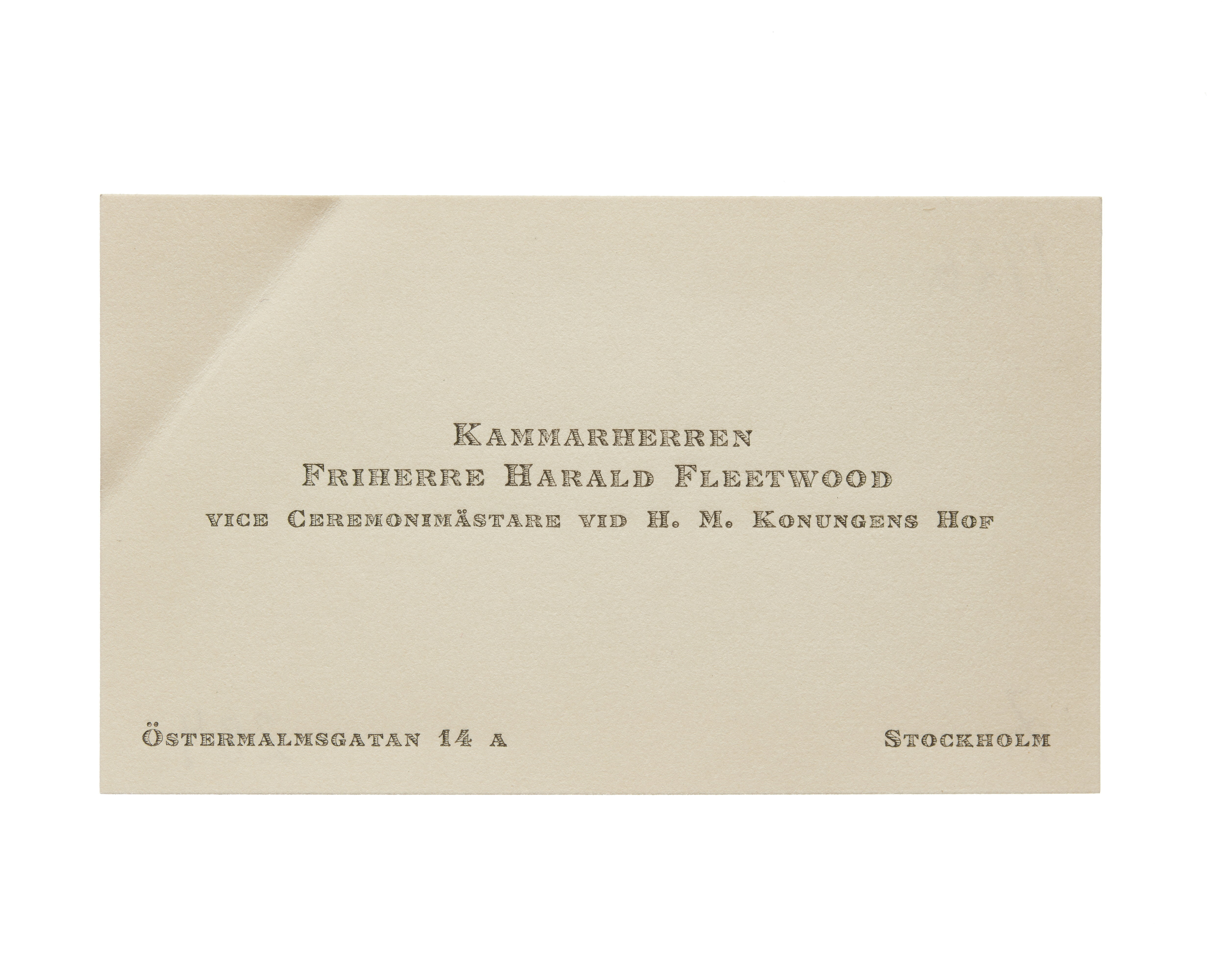 Visitkort från Friherre Harald Fleetwood vice cermonimästare vid hovet, 1926.
