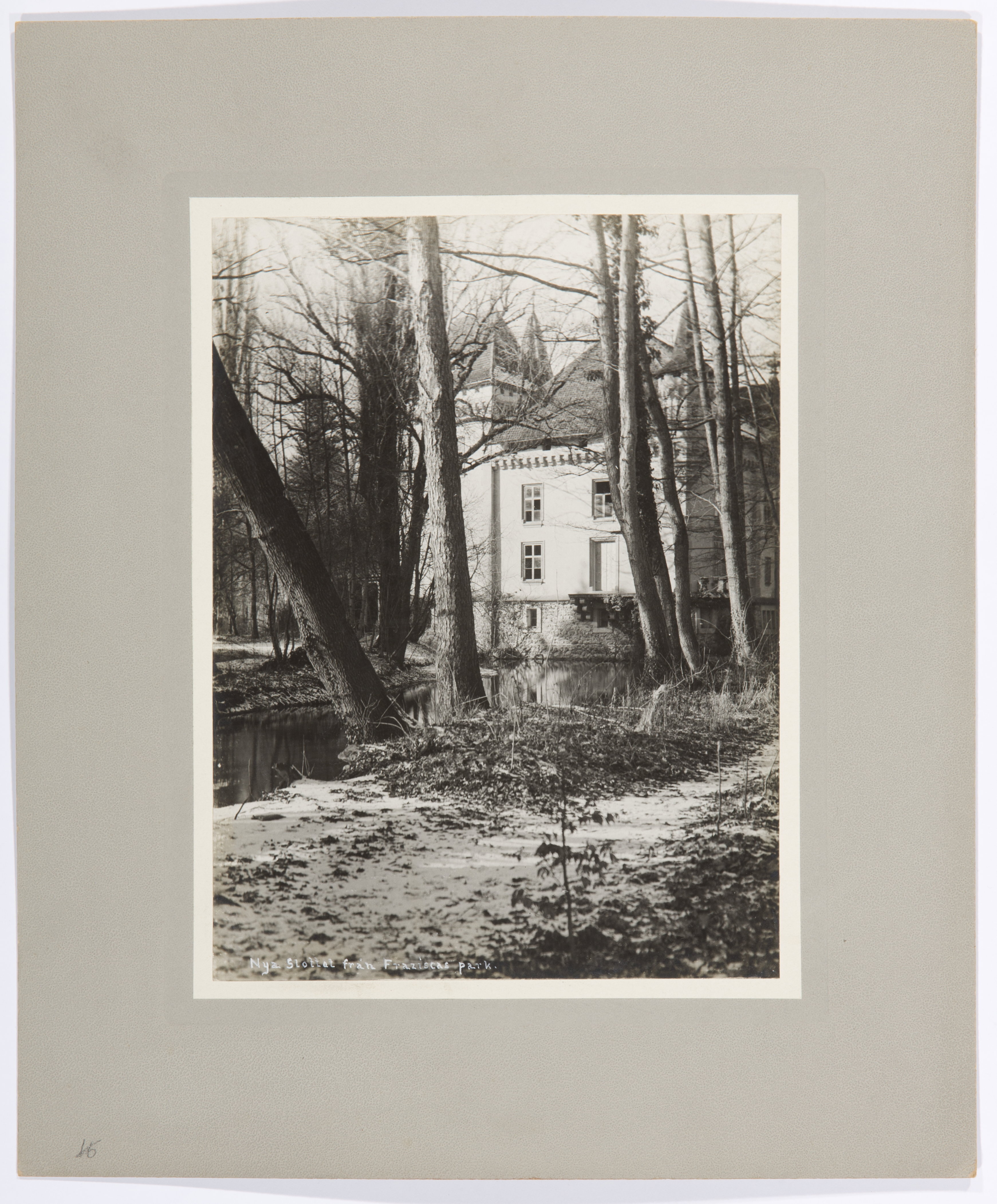 Nya slottet från Franziscas park. Schloss Hallwyl i Schweiz.