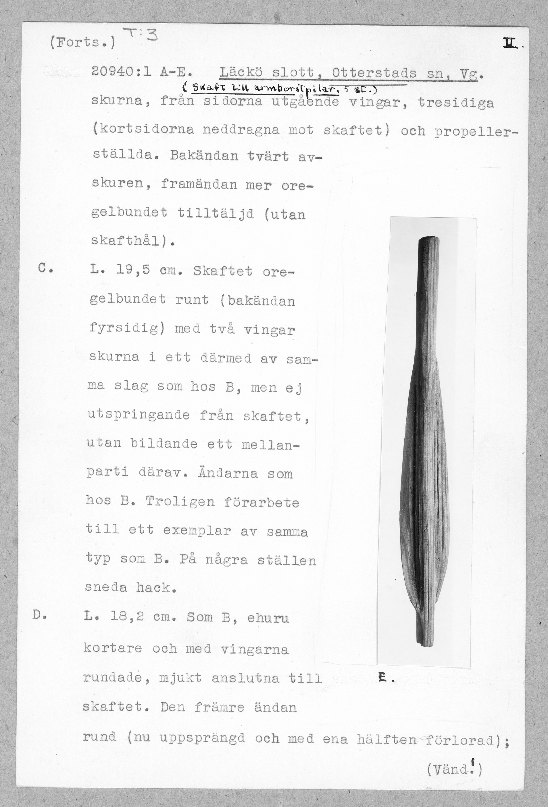 20940:1 \ Västergötland \ Läckö slott,Otterstads sn,Vg. \ Skaft till armborstpilar \ Medeltid