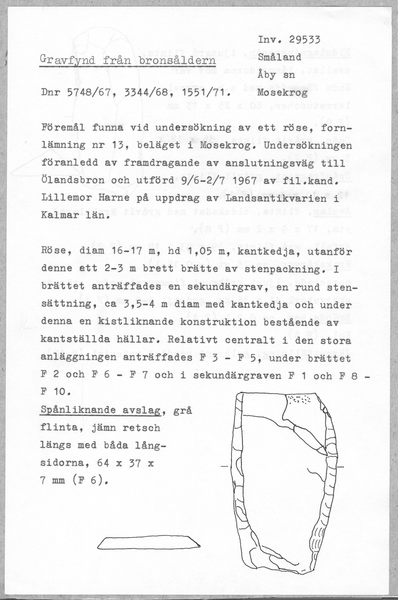29533\Småland, Åby sn, Mosekrog\Gravfynd från bronsåldern