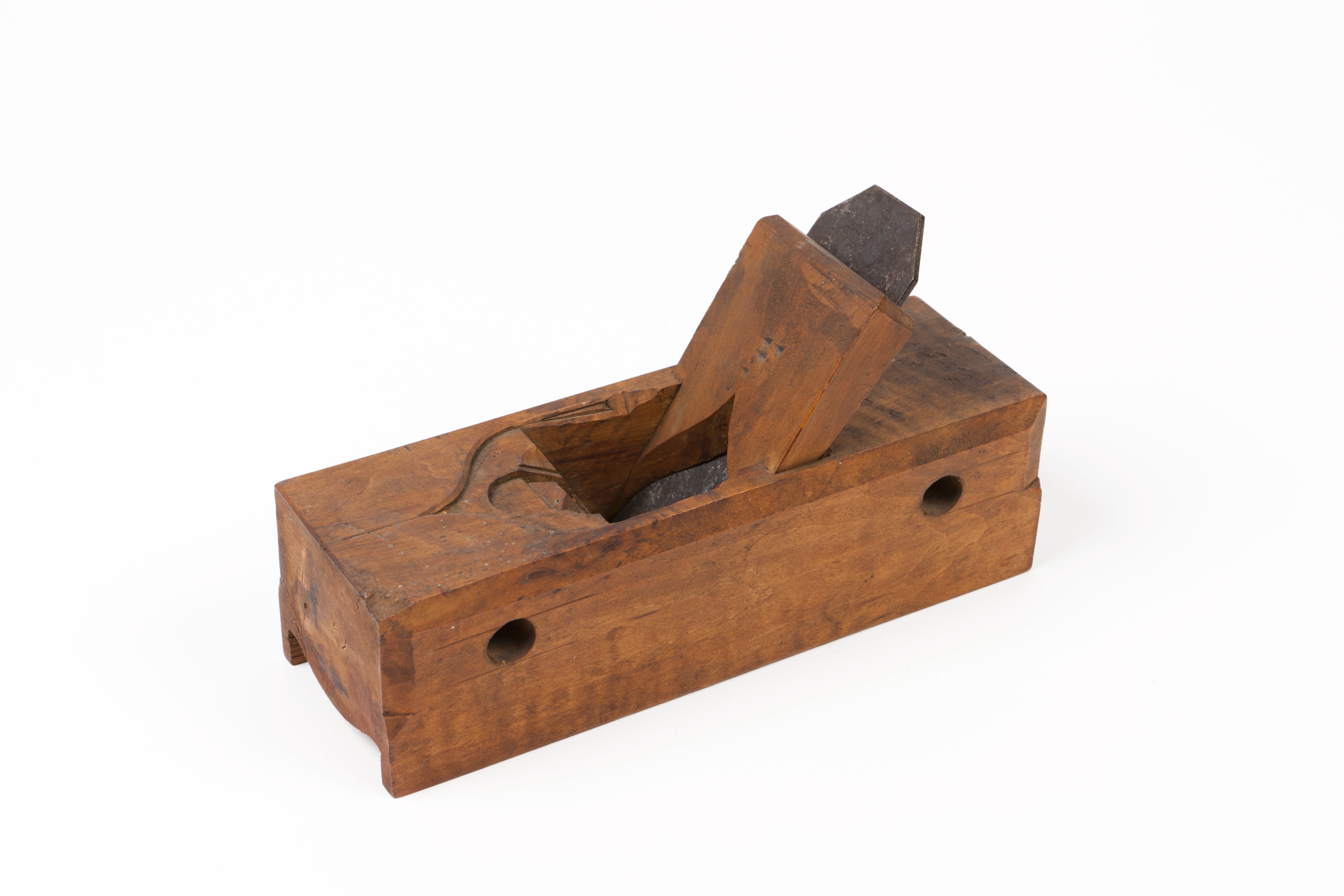 Hålkälshyvel från 1650-1675 av rödbrunbetsat lövträ.