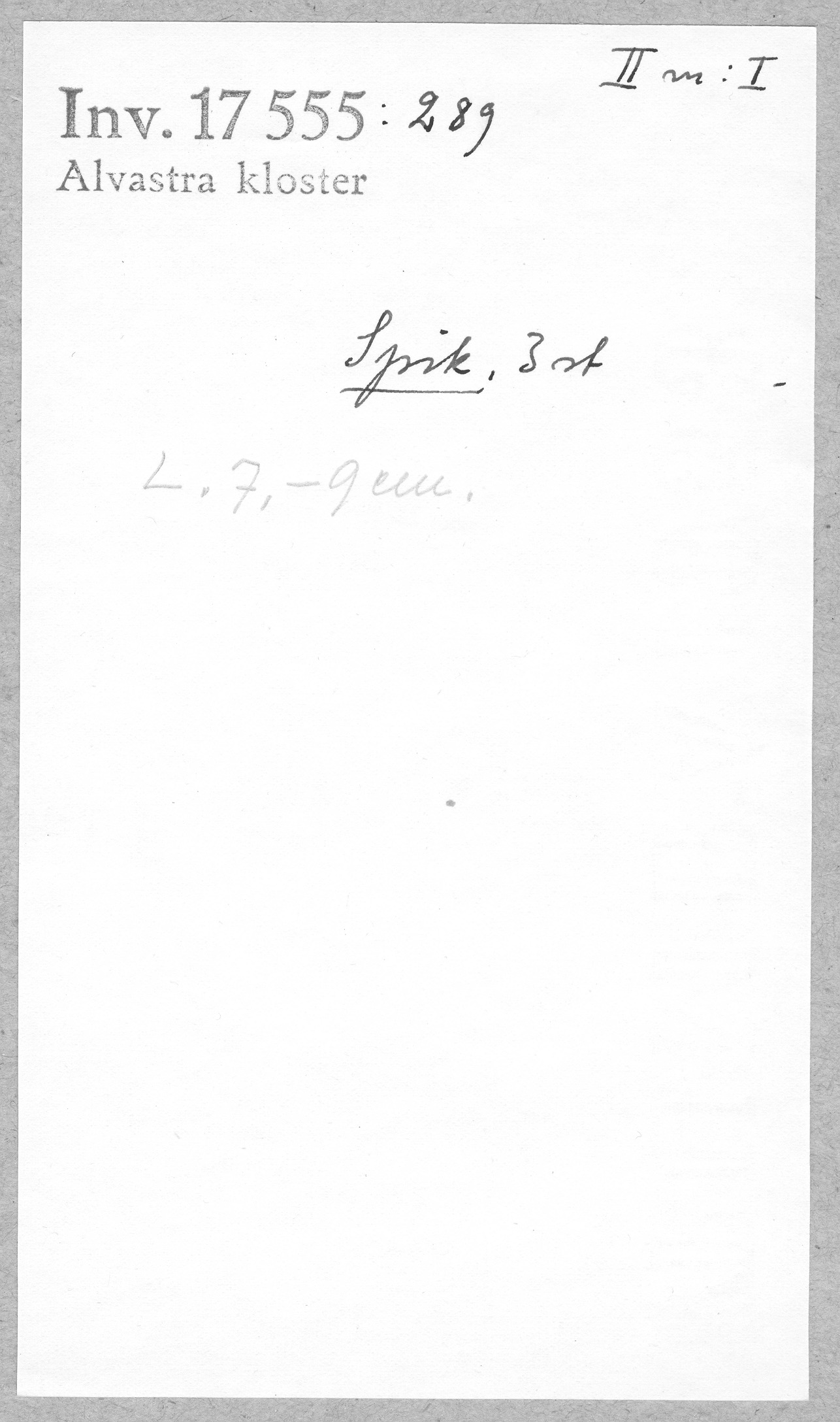 Ög, Västra Tollstad, Alvastra kloster. Spik, 3 st