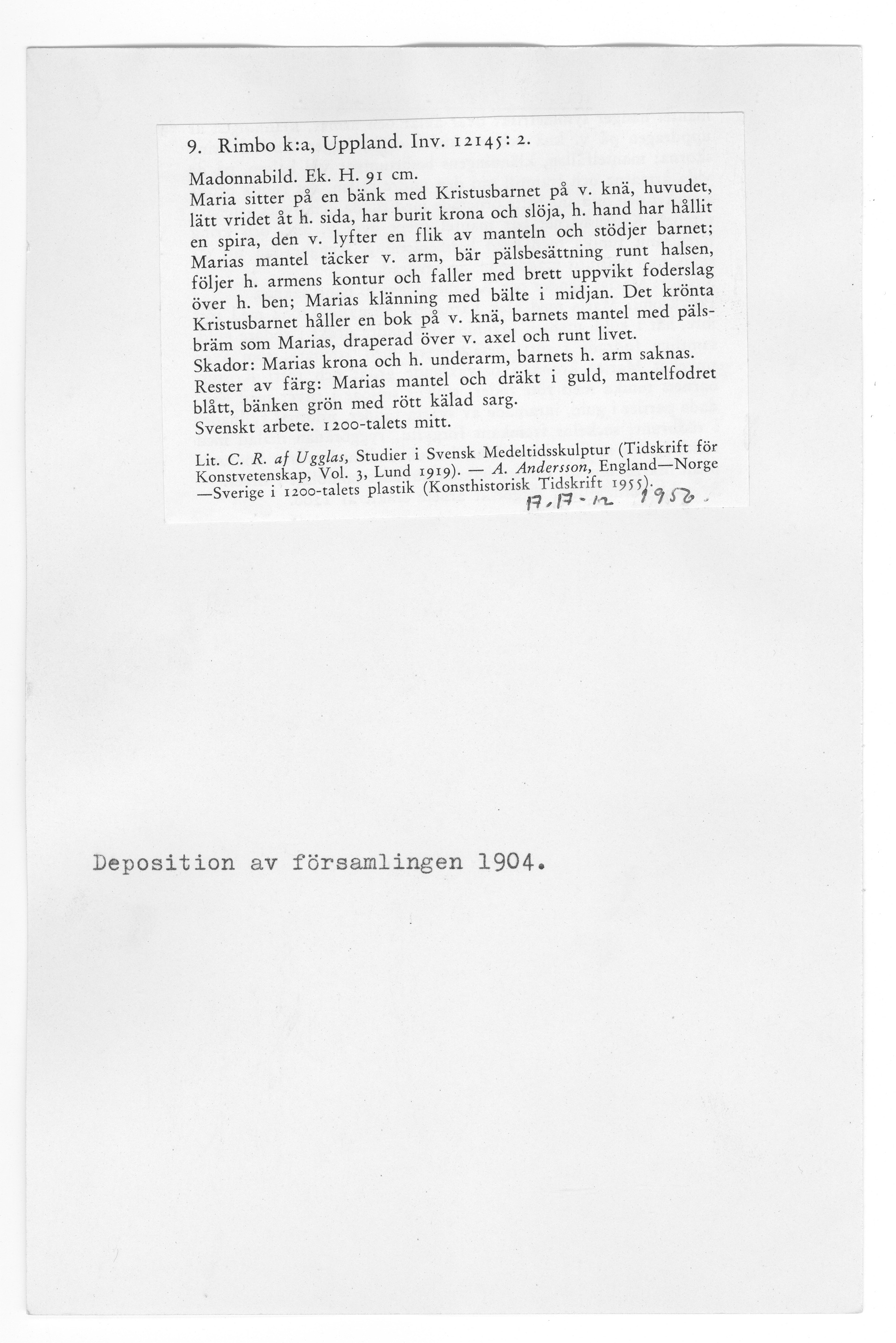 12145:2 \ Uppland \ Rimbo kyrka, Uppland. \ Madonna \ Medeltid