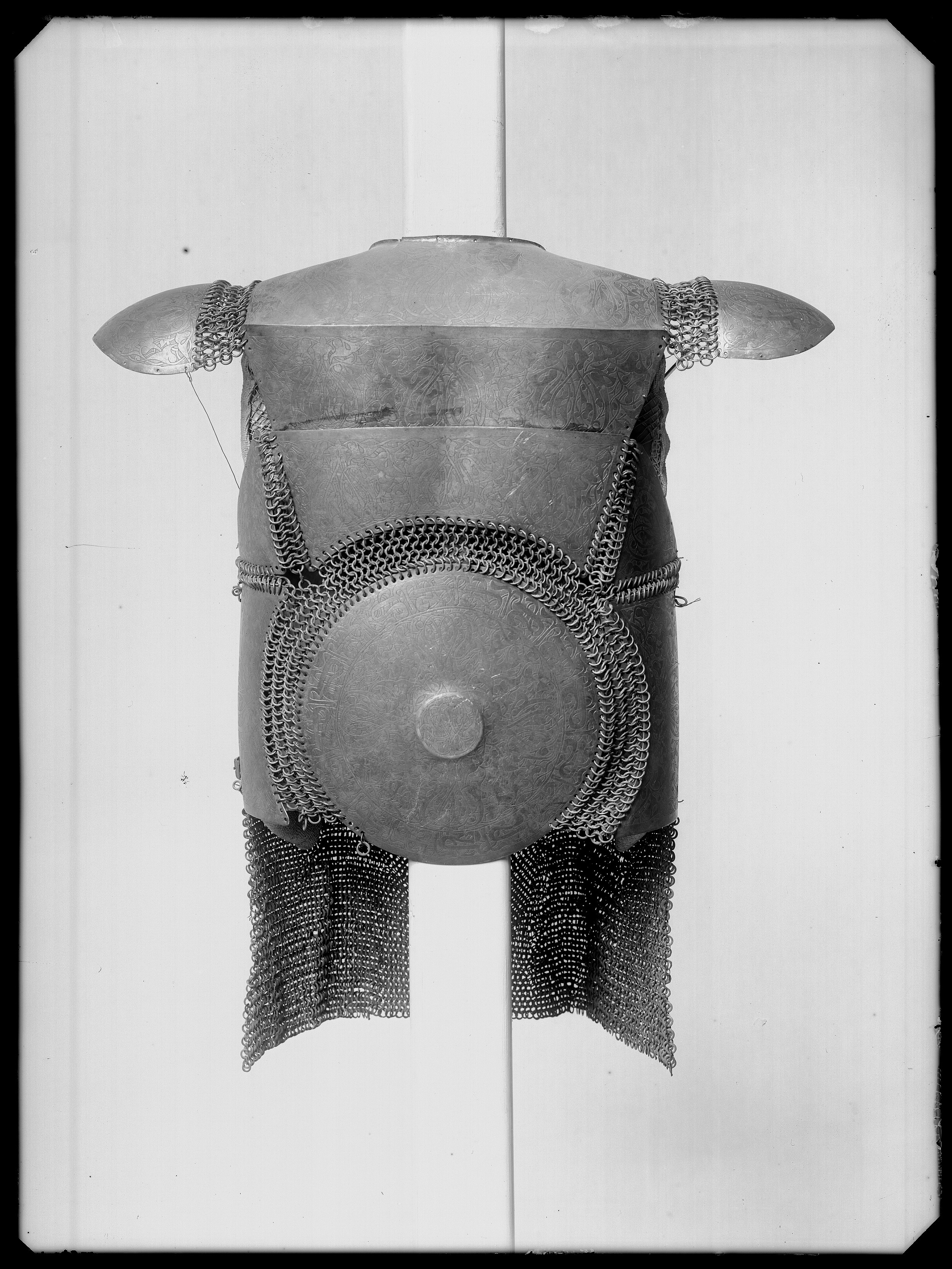 Pansarskjorta, ringbrynja, baksida. Av ringpansar med plåtar fram, bak och på sidorna.