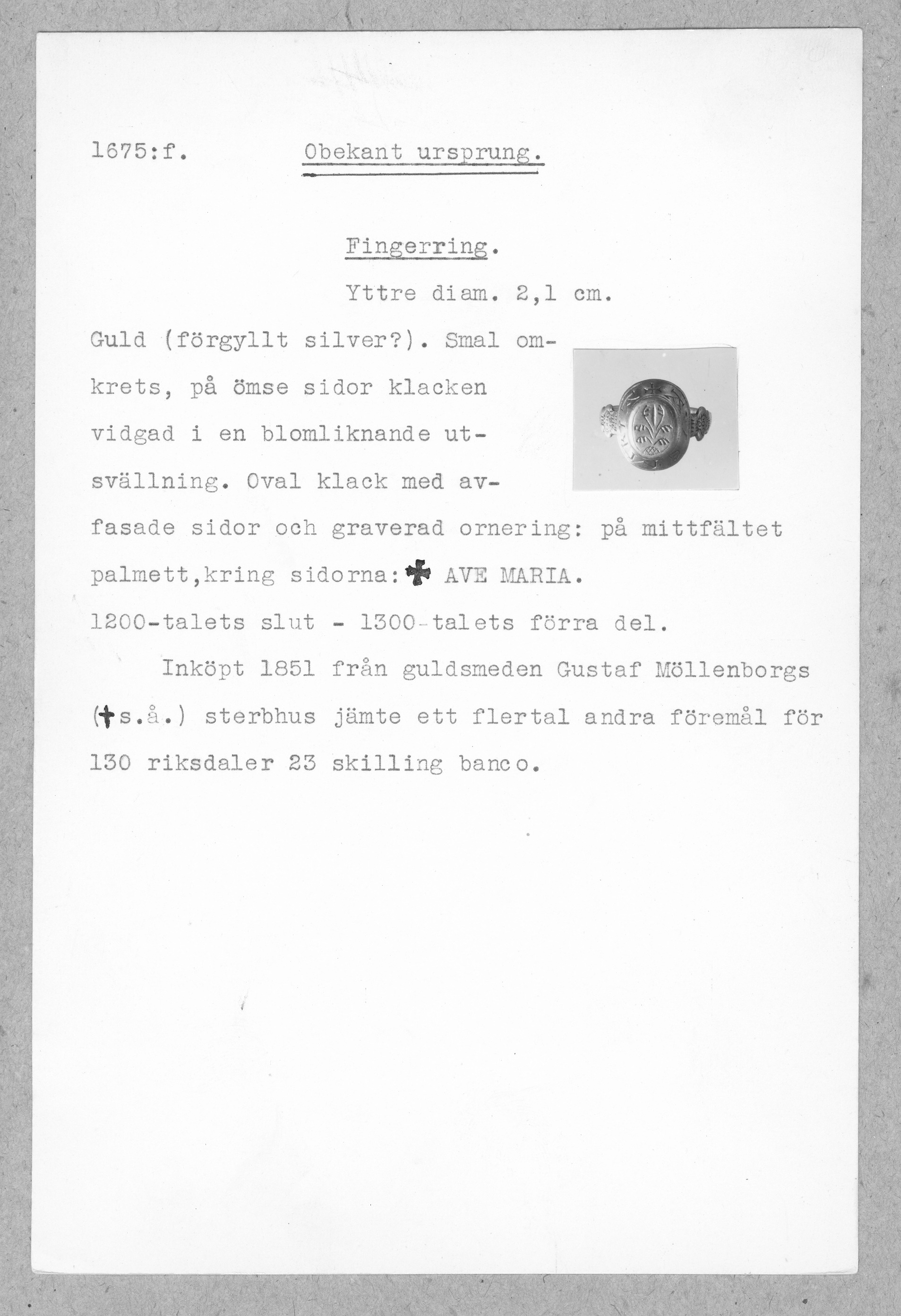 1675: \ \ Obekant ursprung. \ Fingerring \ Medeltid