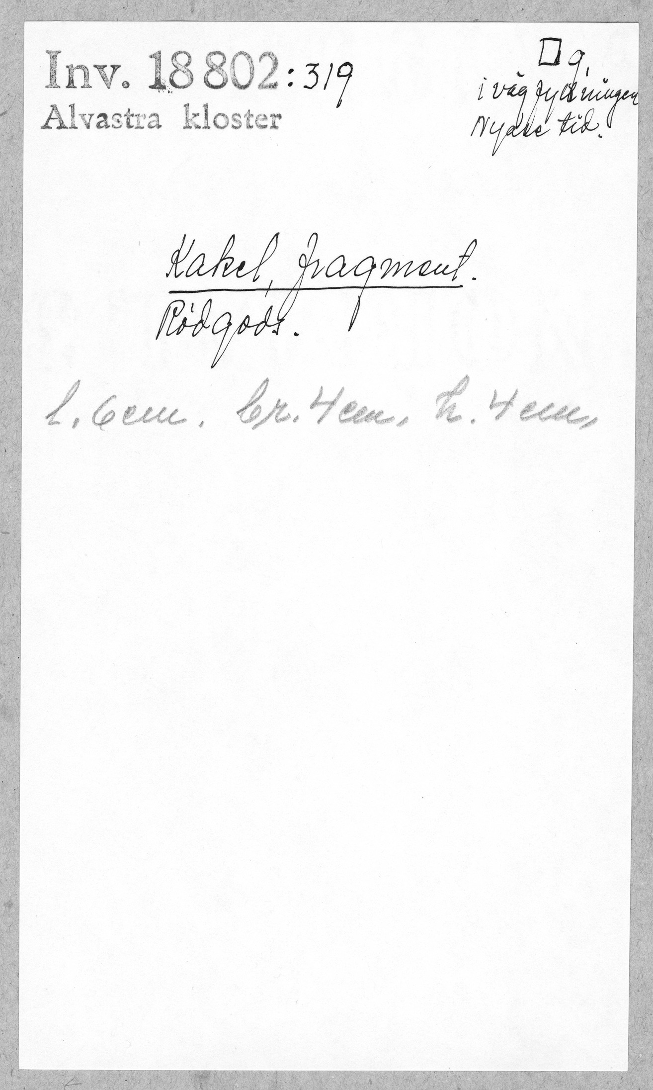 Ög, Västra Tollstad, Alvastra kloster. Kakel, fragment