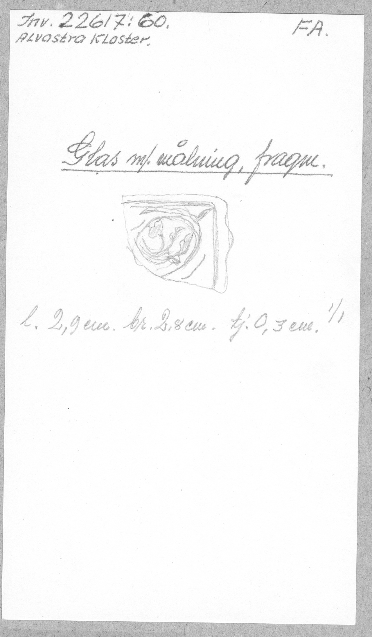 Ög, Västra Tollstad, Alvastra kloster. Glas m. målning, fragm