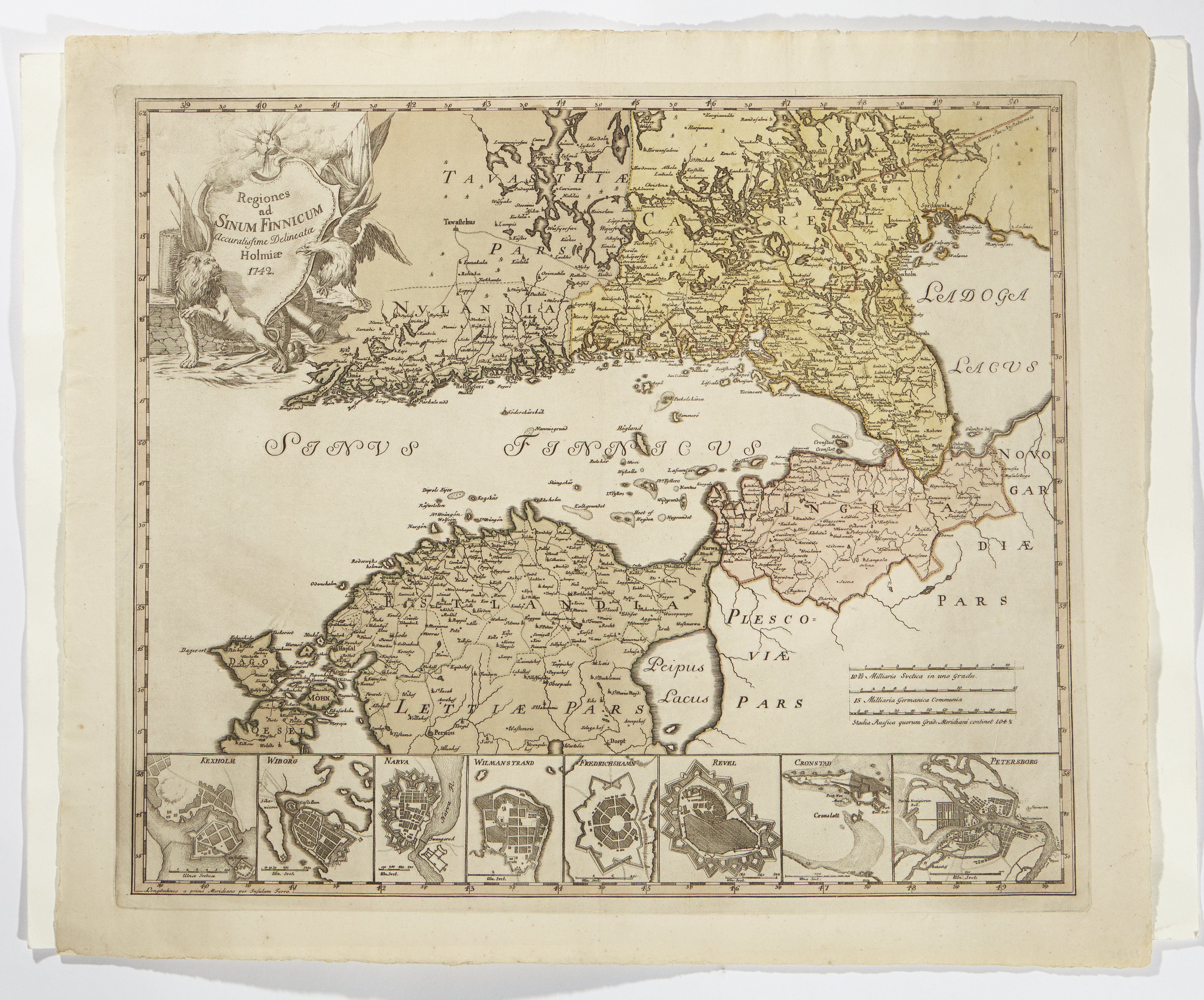 Karta över Finska viken med södra Finland, Estland samt Ingermanland och Ladoga, från 1742.