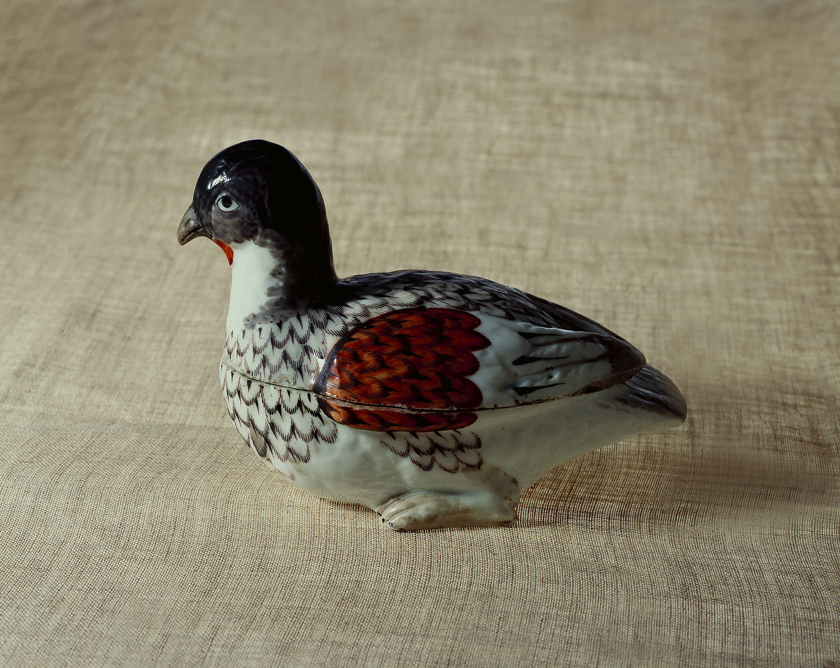 Ask i porslin i form av en rapphöna