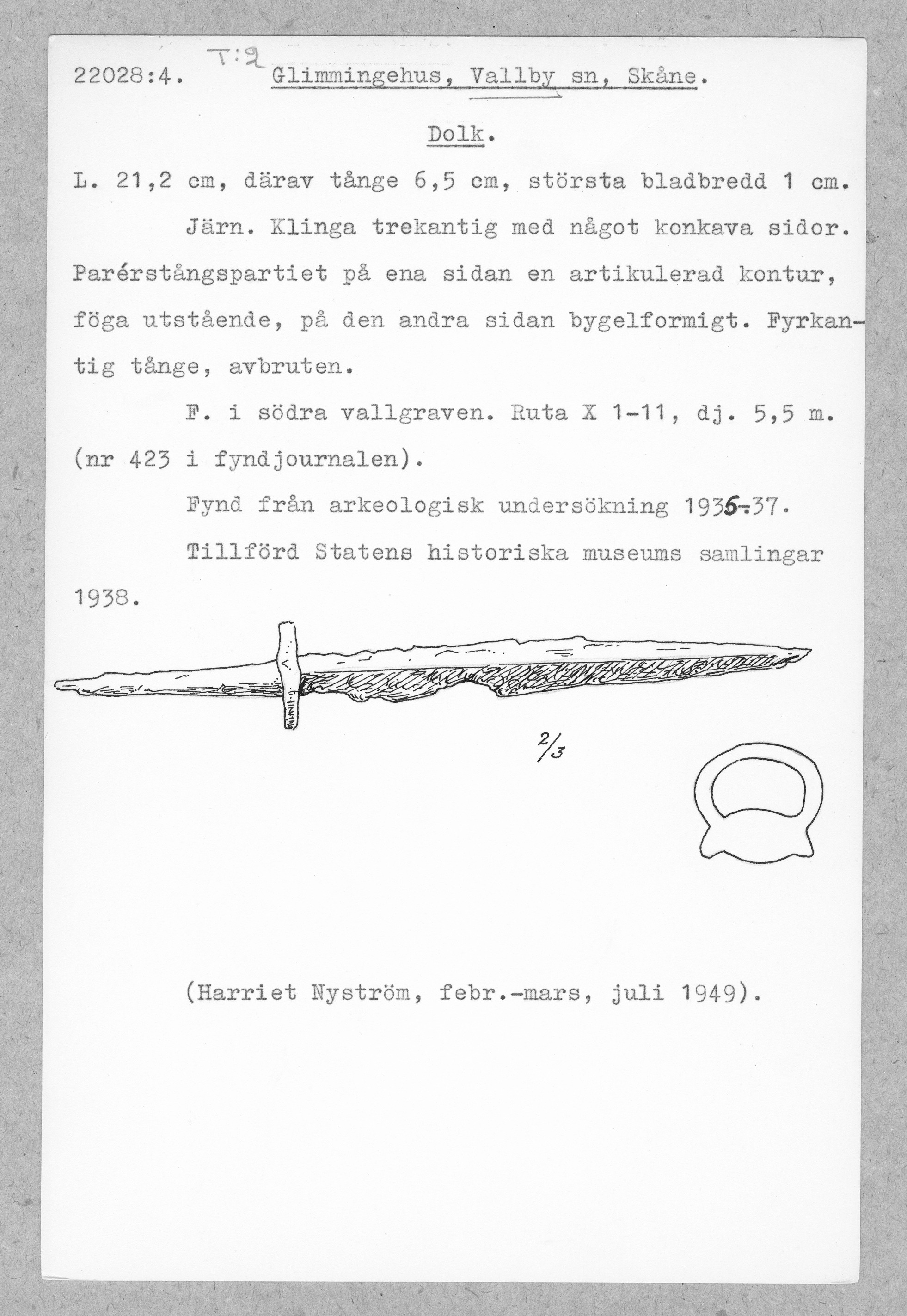 22028:4 \ Skåne \ Glimmingehus, Vallby sn, Skåne. \ Dolk \ Medeltid