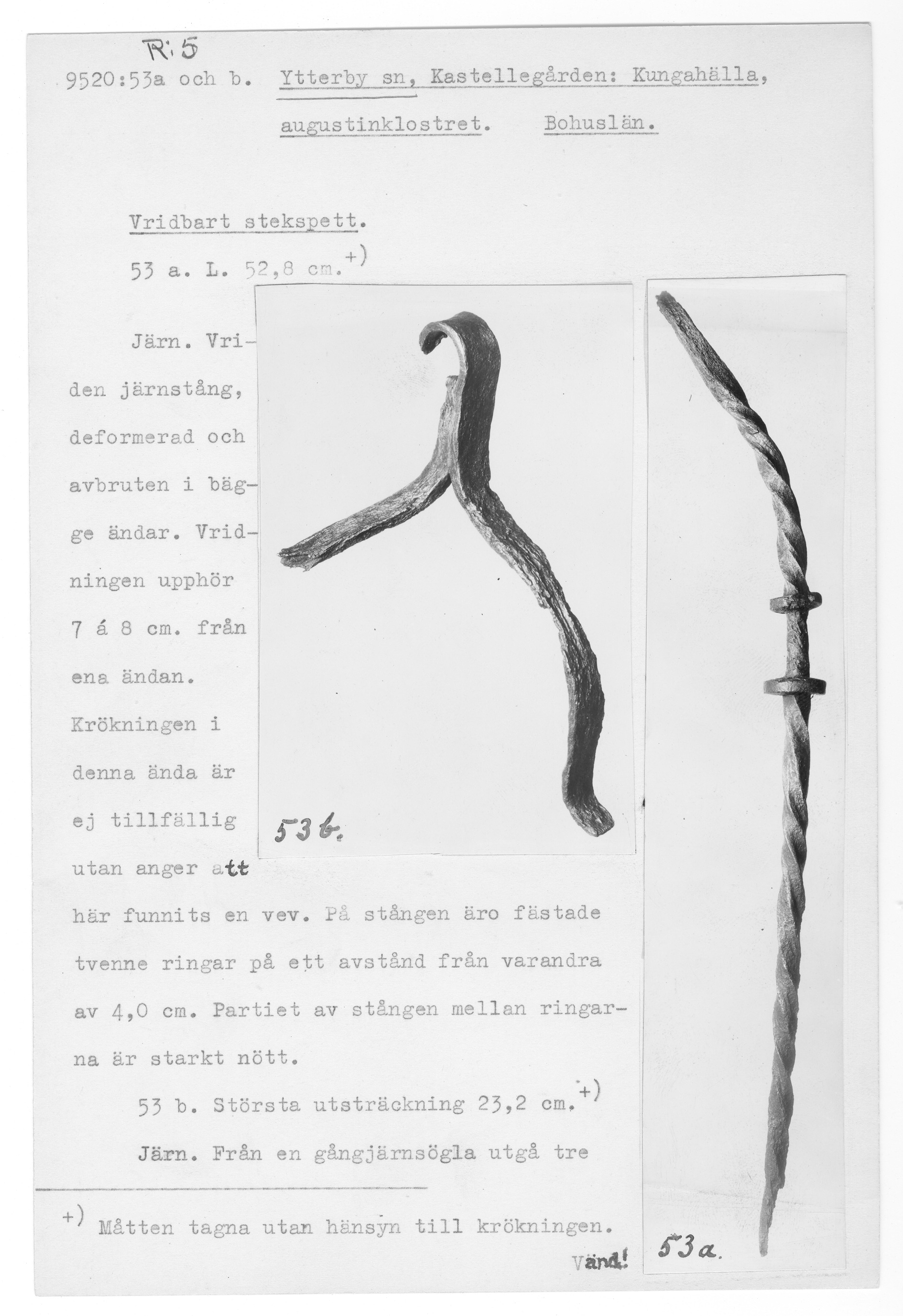 9520:53a och b \ Bohuslän \ Ytterby sn, Kastellegården: Kungahälla, augustinklostret. Bohuslän. \ Vridbart stekspett \ Medeltid