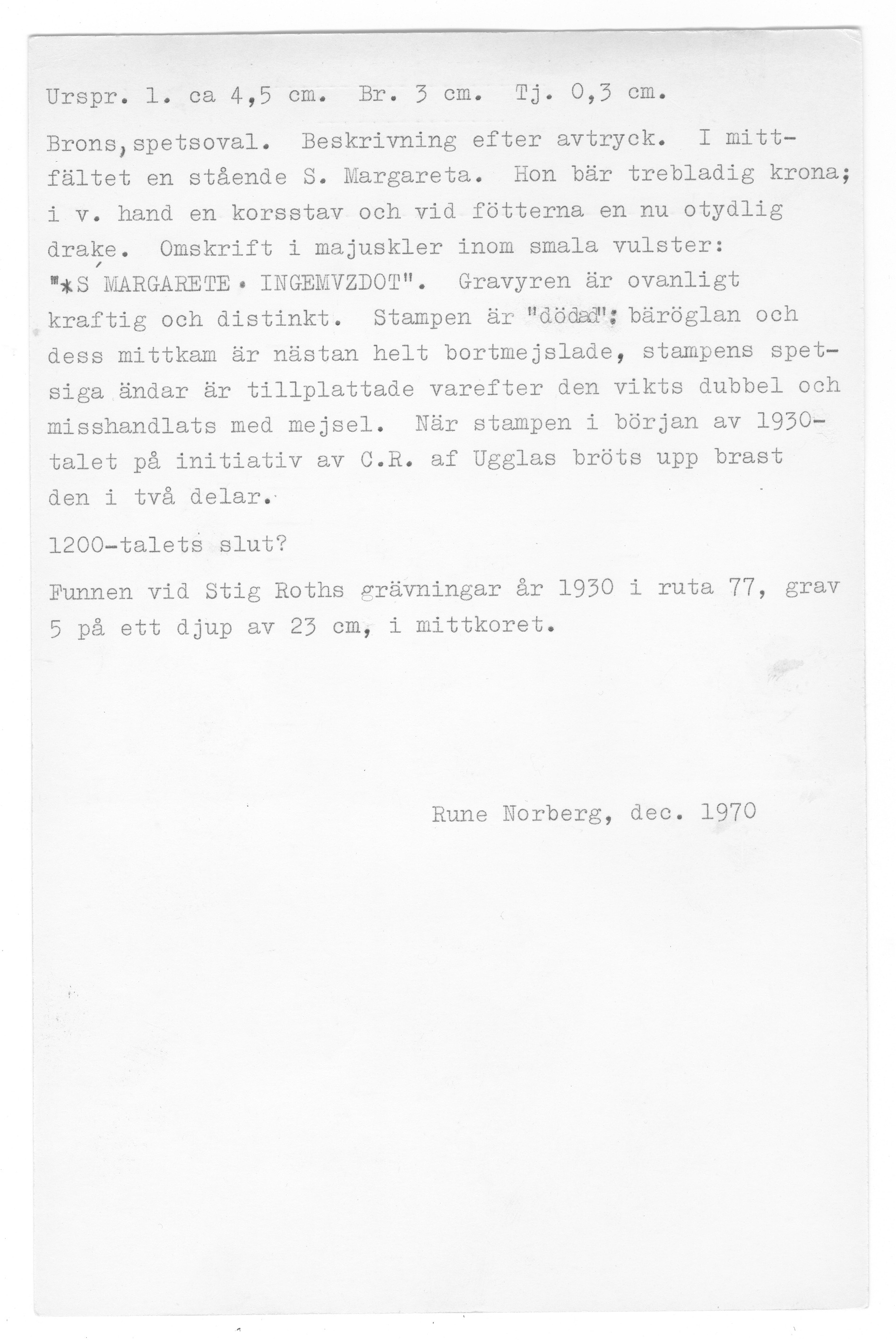 23950:30:576 \ Västergötland \ Gudhems klosterruin Västergötland \ Sigillstamp för Margareta Ingemundsdotter \ Medeltid