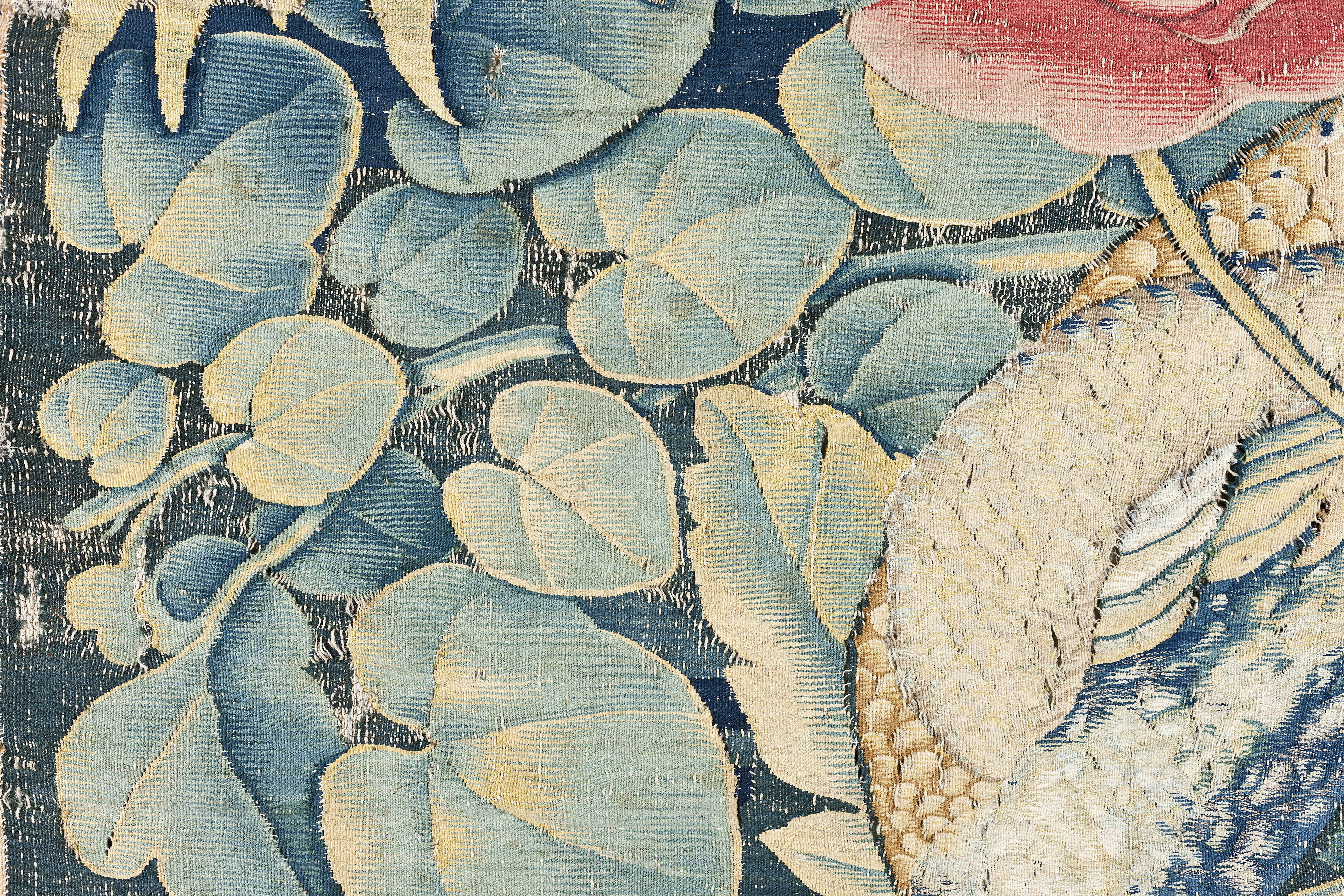 Tapet från 1500-talet kallad ""Vallmotapeten"" eller ""Verduren"" gjord av ull och silke (7 trådar per kv.cm) i gobelängteknik. Historiska konserveringar.