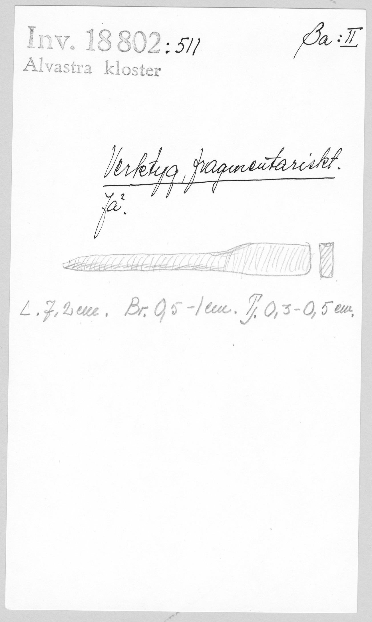 Ög, Västra Tollstad, Alvastra kloster. Verktyg, fragmentariskt